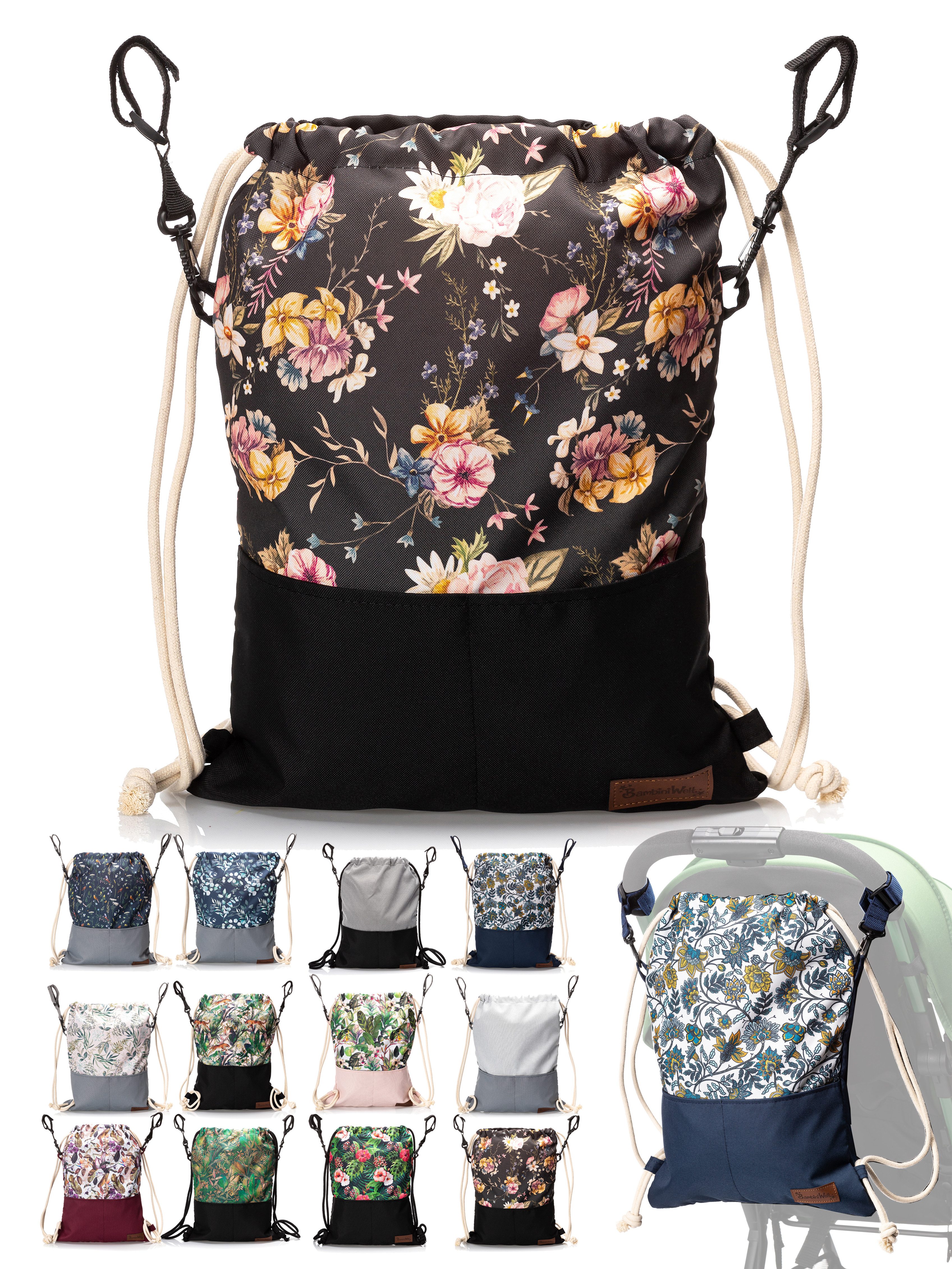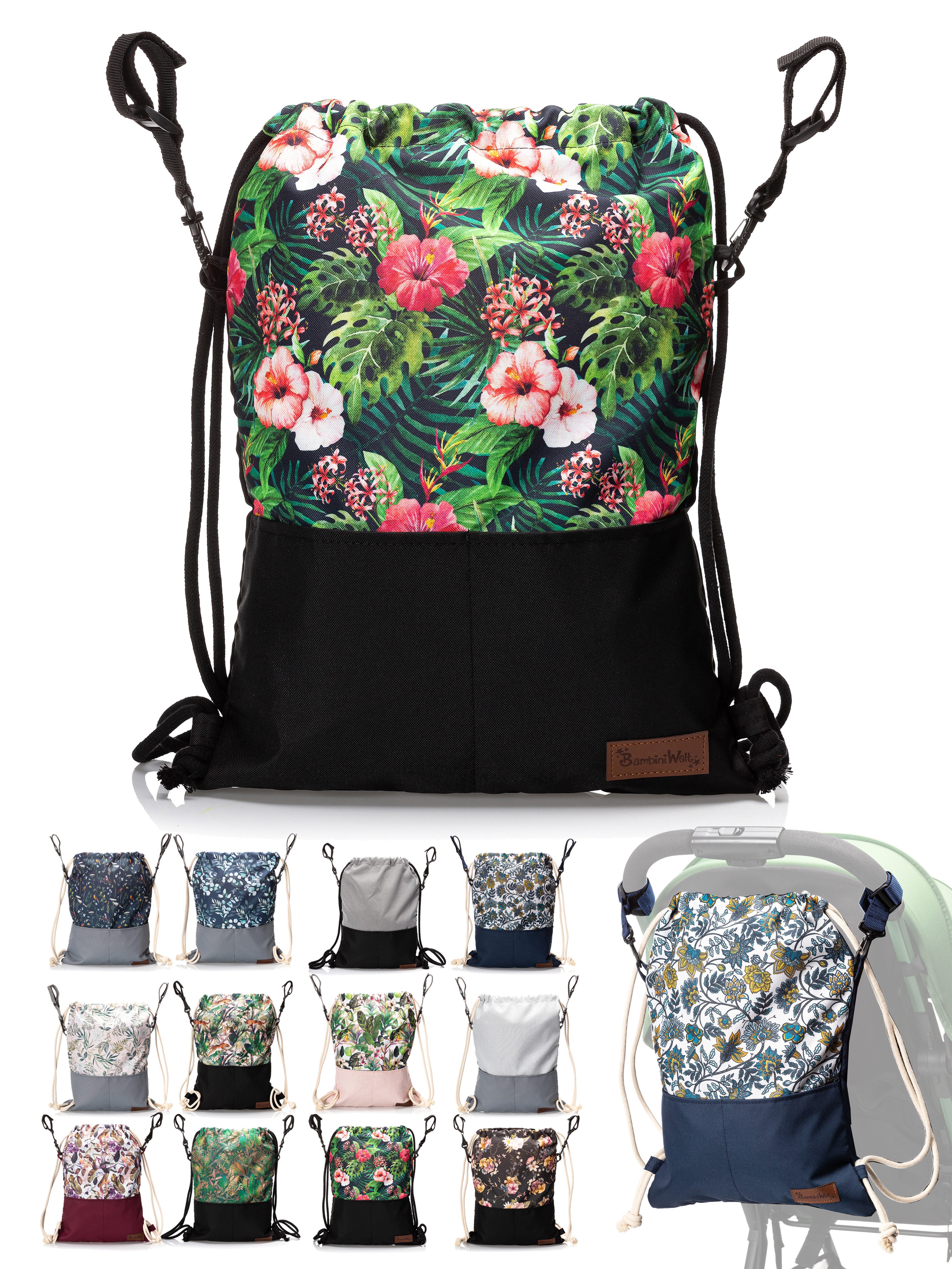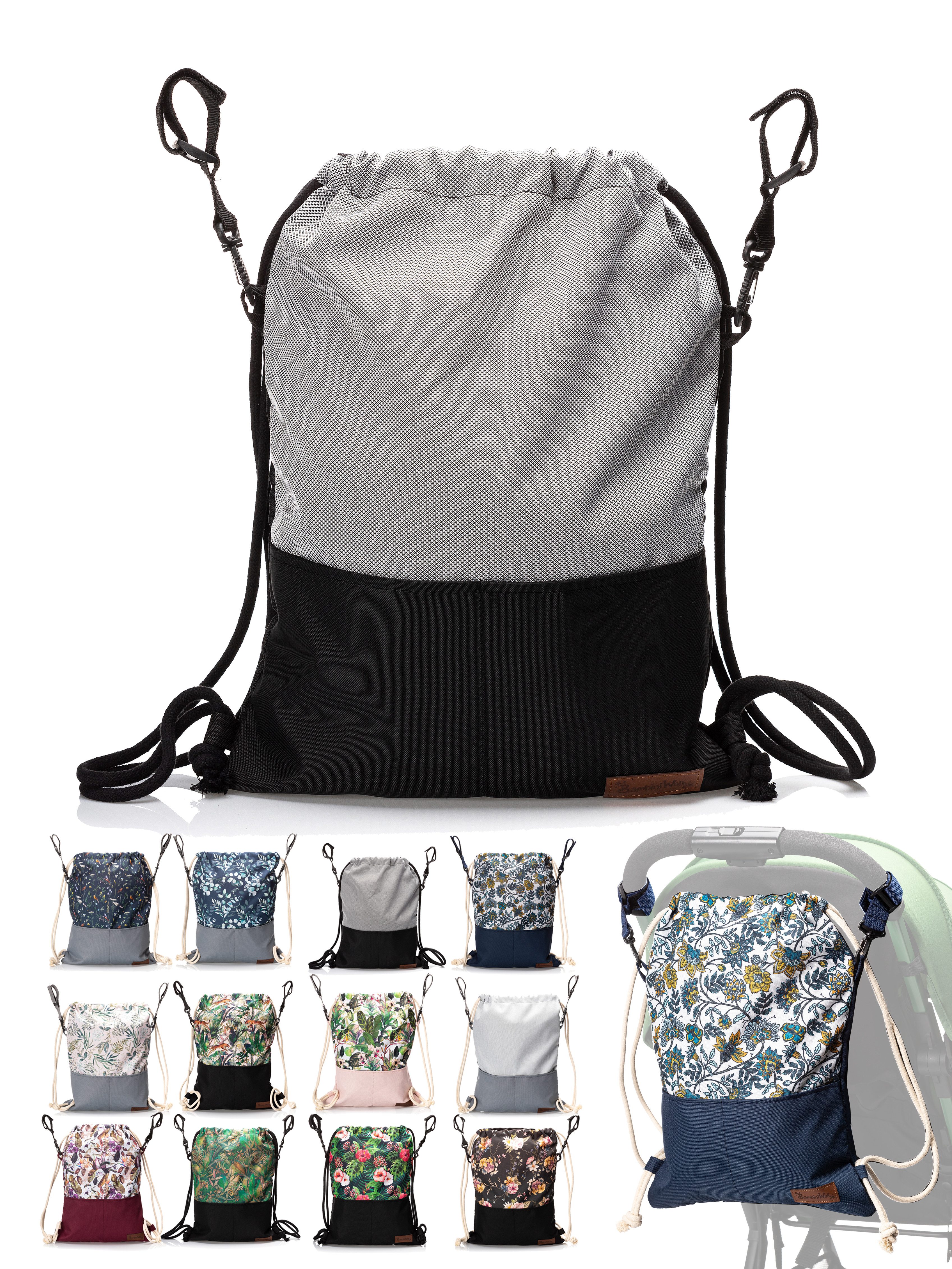 BambiniWelt Kinderwagen Beutel, leicht und vielseitig – die universale Kinderwagen Tasche mit Rucksackfunktion