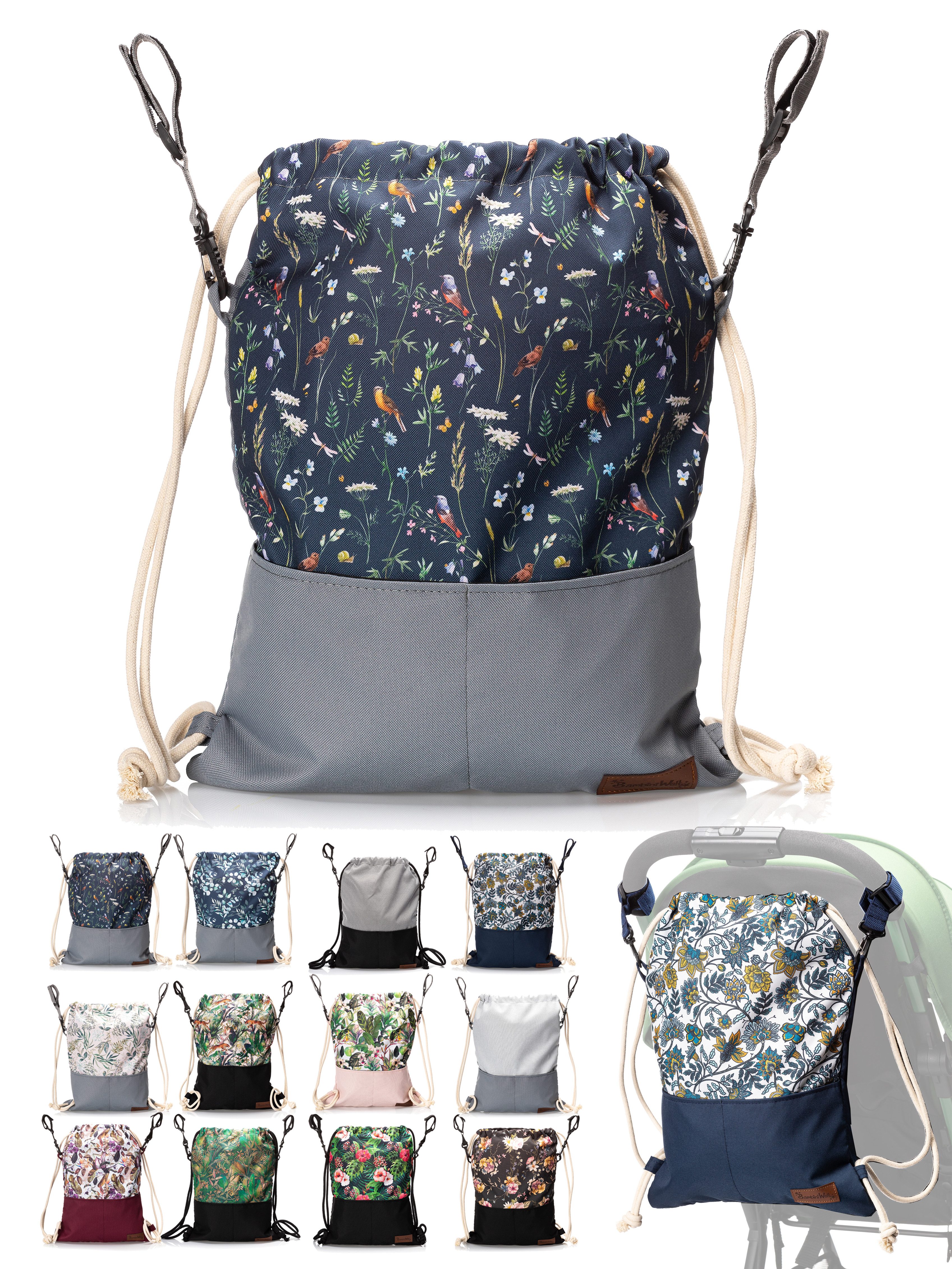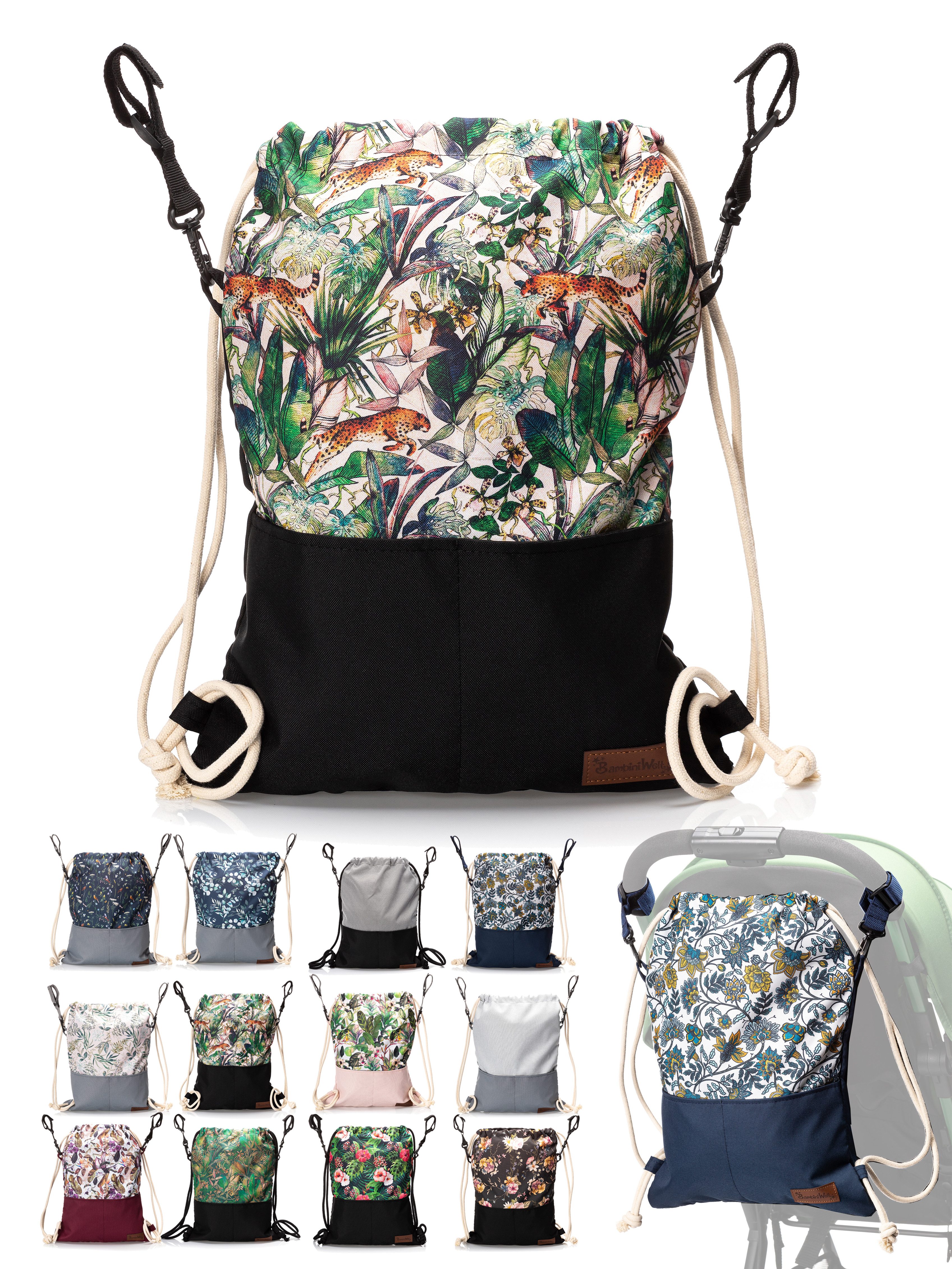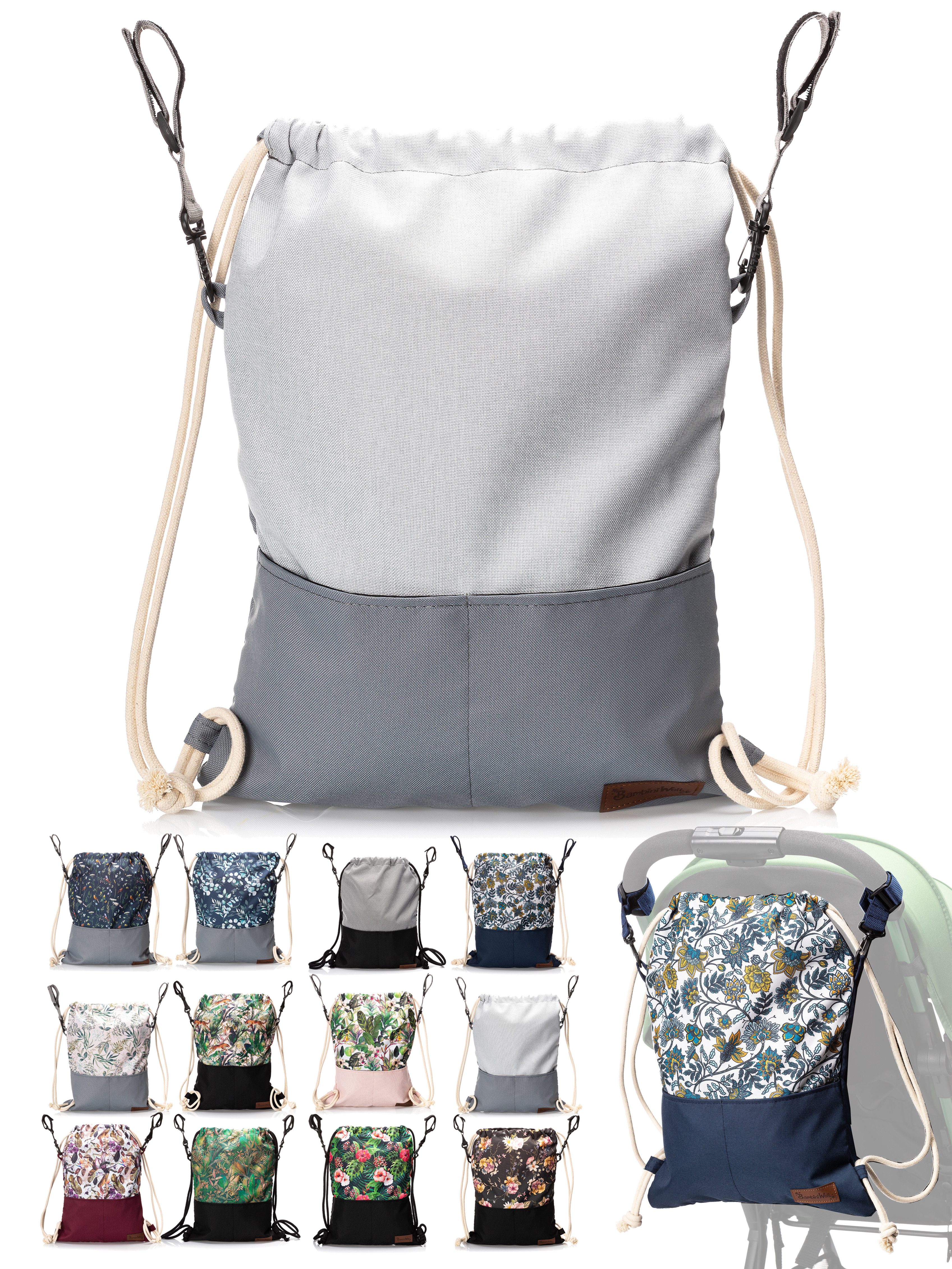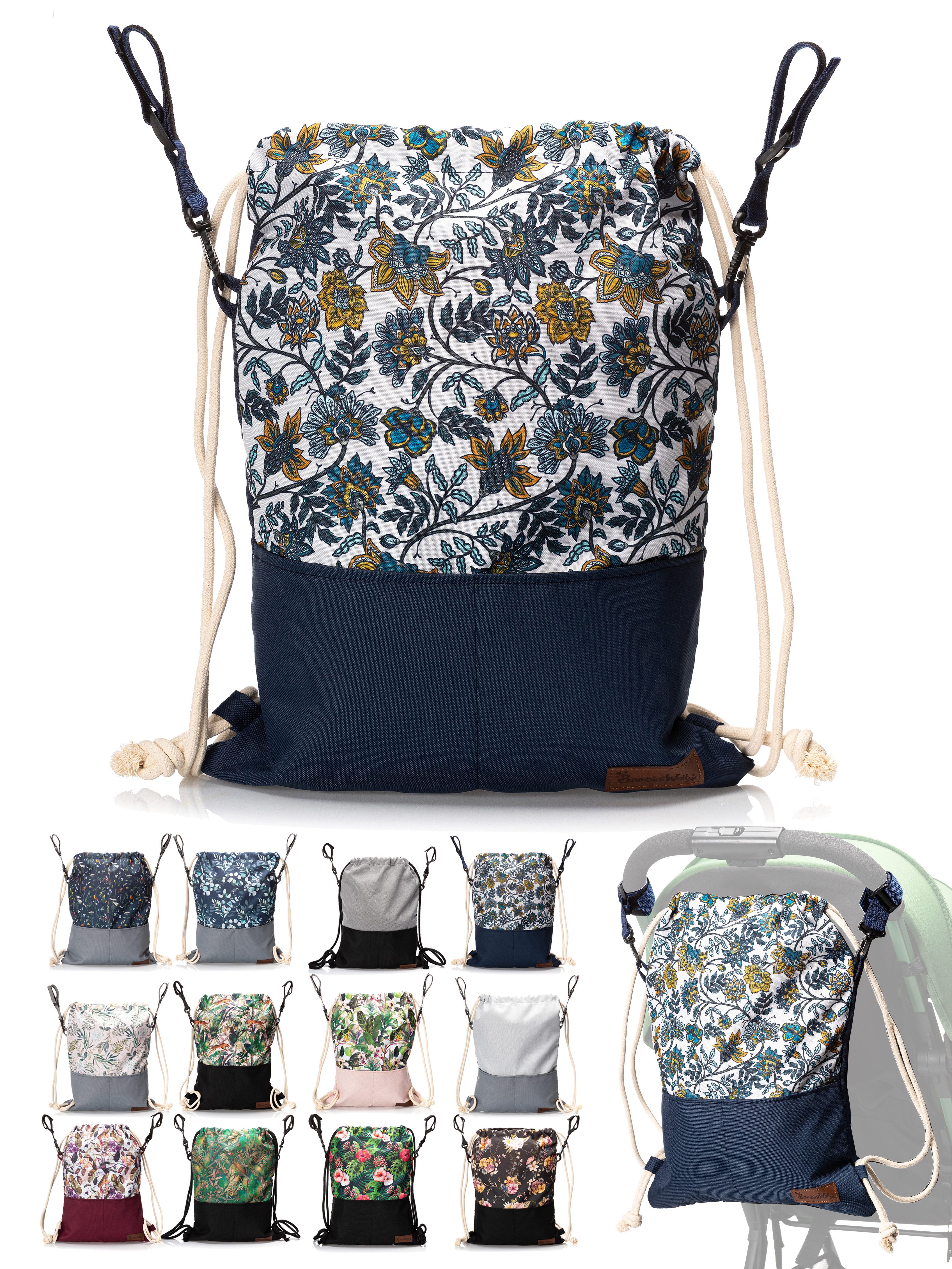 BambiniWelt Kinderwagen Beutel, leicht und vielseitig – die universale Kinderwagen Tasche mit Rucksackfunktion