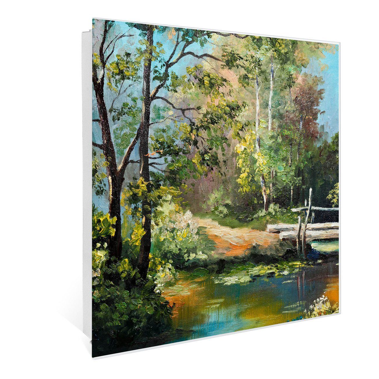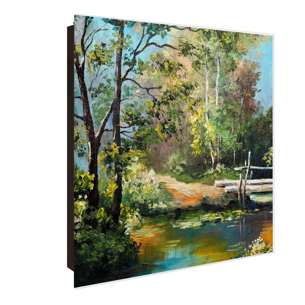 Tagtäglich begeben wir uns auf die verzweifelte Suche nach unserem Schlüssel - banjados großer Schlüsselkasten macht damit Schluß! Diese ausgefallene Schlüsselbox aus Glas ist ein universell einsatzbarer Begleiter für die Wohnung oder das Büro. Die Front ziert eine schöne Glastür mit Motiv. Diese kann mit Kreidestiften beschrieben werden. Oder Sie nutzen diese mit extrastarken Neodym-Magneten als Magnettafel. Das Gehäuse präsentiert sich in elegantem schwarz und bietet mit seiner Размер 30cm x 30cm x 5cm genug Stauraum auf 50 Haken, die in 5 Reihen aufgeteilt sind. So haben Sie alle wichtigen Schlüssel stets im Blick. Geliefert wird Ihnen der Schlüsselschrank bereits mit dem notwendigen Montagematerial. Damit ist der neue Schlüsselkasten sofort einsatzbereit. Wir fertigen jeden einzelnen Schlüsselkasten für Sie individuell an, Sie erhalten keine preiswerte Importware, sondern Handarbeit. Wählen Sie aus einer großen Vielfalt das für Sie passende Motiv aus. Viel Freude mit der neuen Schlüsselordnung wünscht das banjado-Team aus Sachsen!