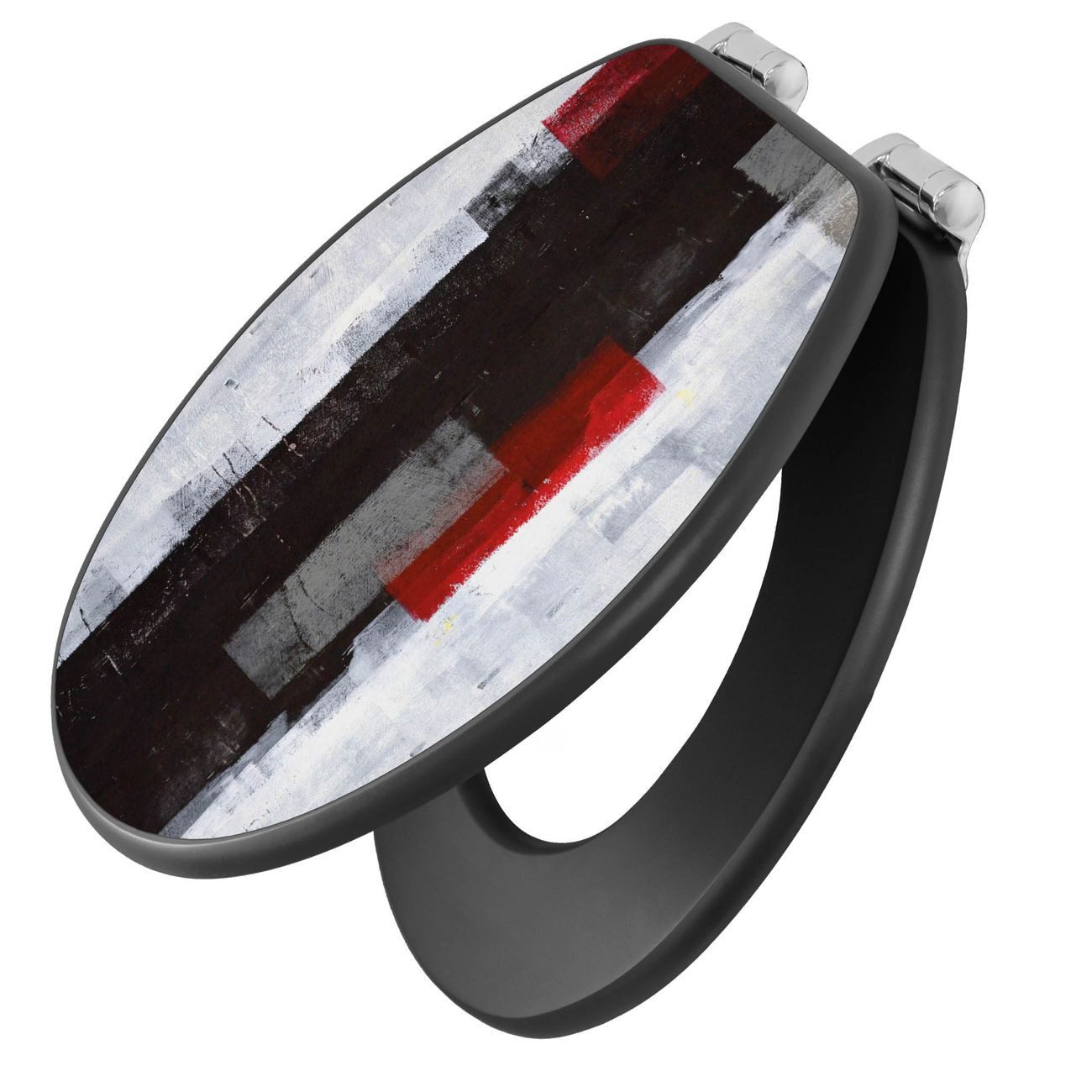 banjado WC-Sitz Anthrazit Motiv Abstrakt Rot (umweltfreundliches Material, integrierte Absenkautomatik), 46,5 x 38 x 5 cm