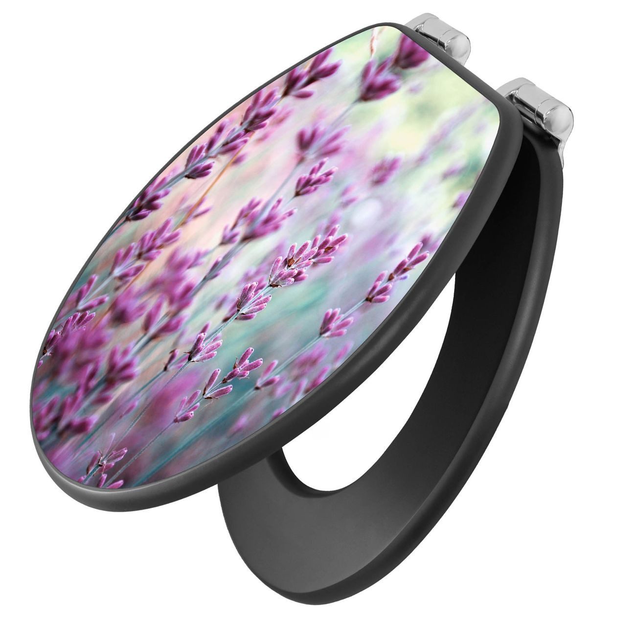 banjado WC-Sitz Anthrazit Motiv Lavendel 2 (umweltfreundliches Material, integrierte Absenkautomatik), 46,5 x 38 x 5 cm