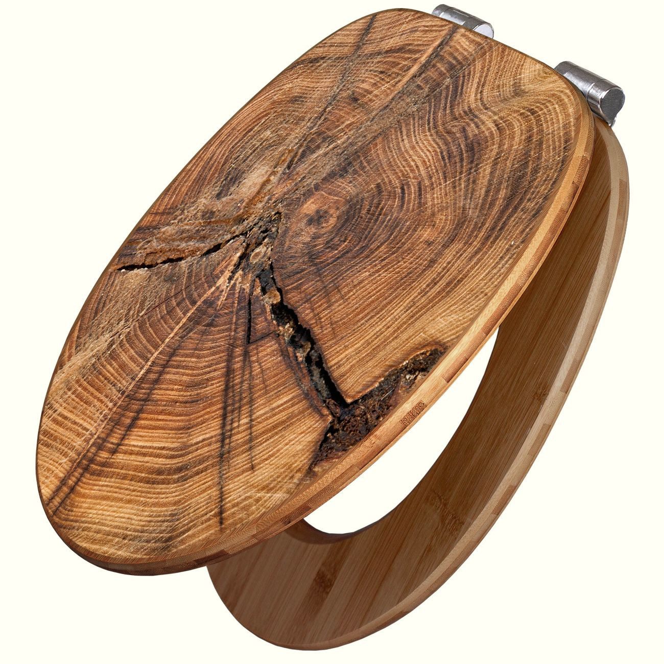 banjado WC-Sitz aus Bambus Motiv Jahresringe (umweltfreundliches Material, integrierte Absenkautomatik), 45,8 x 37,5 x 5 cm