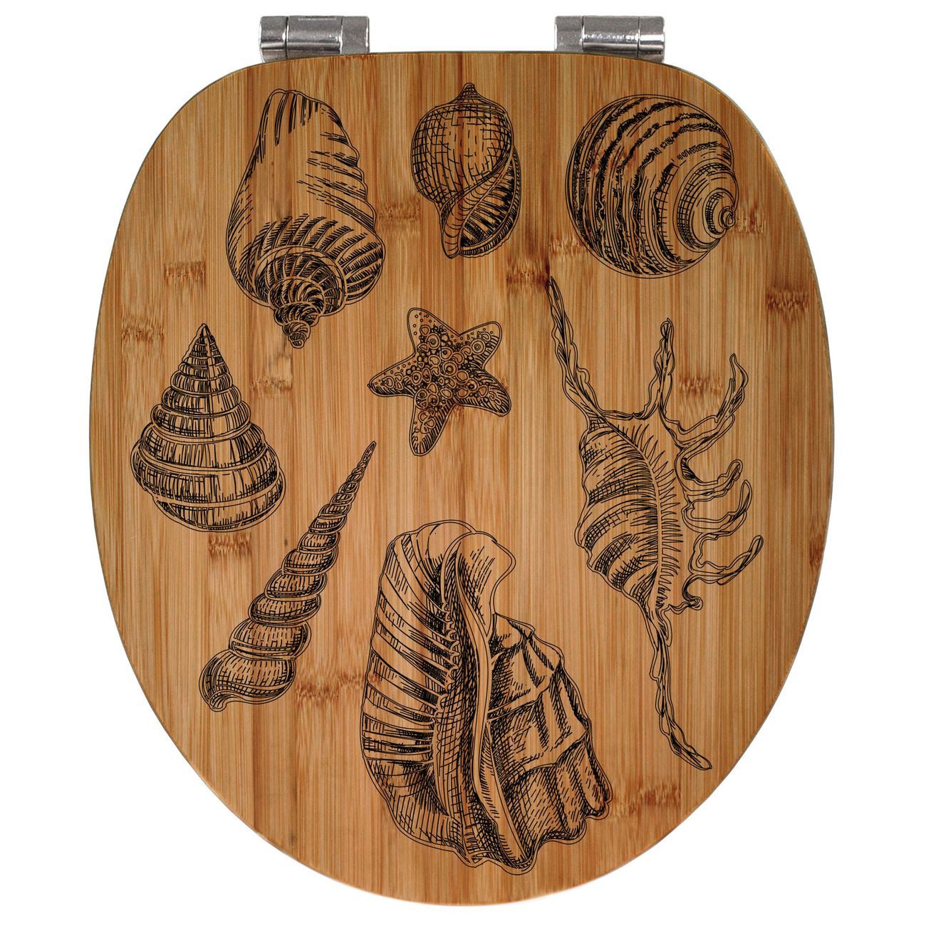 banjado WC-Sitz Bambus mit Gravur Muschel 5 (umweltfreundliches Material, integrierte Absenkautomatik), 45,8 x 37,5 x 5 cm