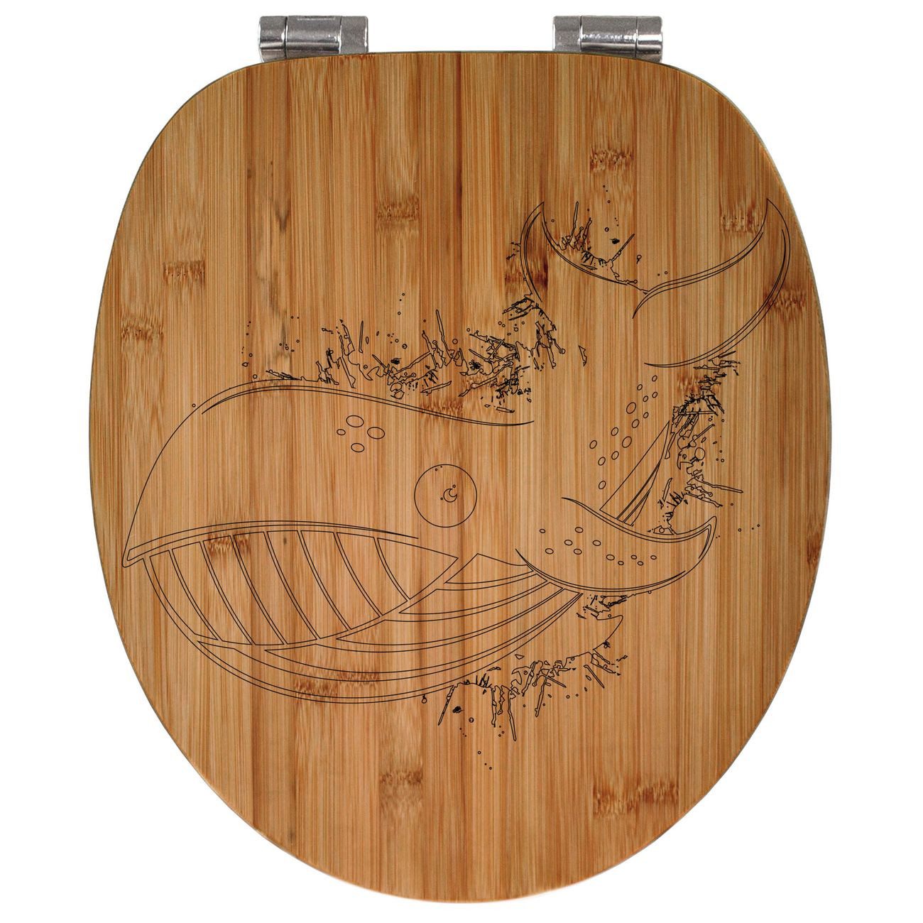 banjado WC-Sitz Bambus mit Gravur Wal Comic (umweltfreundliches Material, integrierte Absenkautomatik), 45,8 x 37,5 x 5 cm