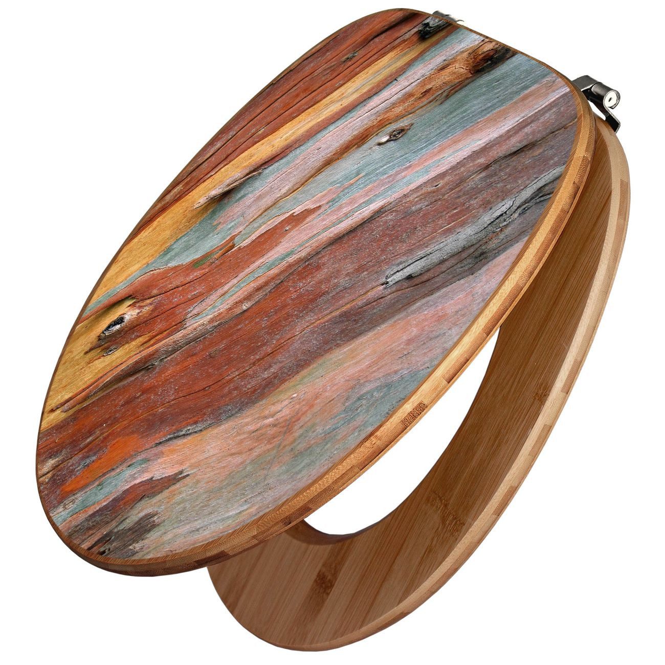 banjado WC-Sitz Bambus Motiv Coloured Wood (umweltfreundliches Material, Edelstahl Scharniere), 44 x 38 x 5 cm