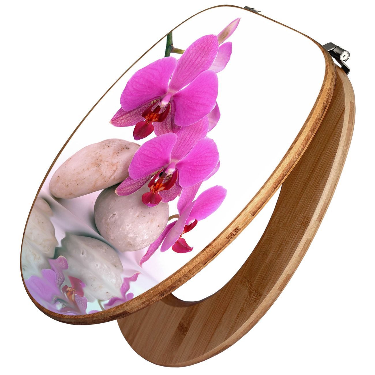 banjado WC-Sitz Bambus Motiv Orchidee (umweltfreundliches Material, Edelstahl Scharniere), 44 x 38 x 5 cm