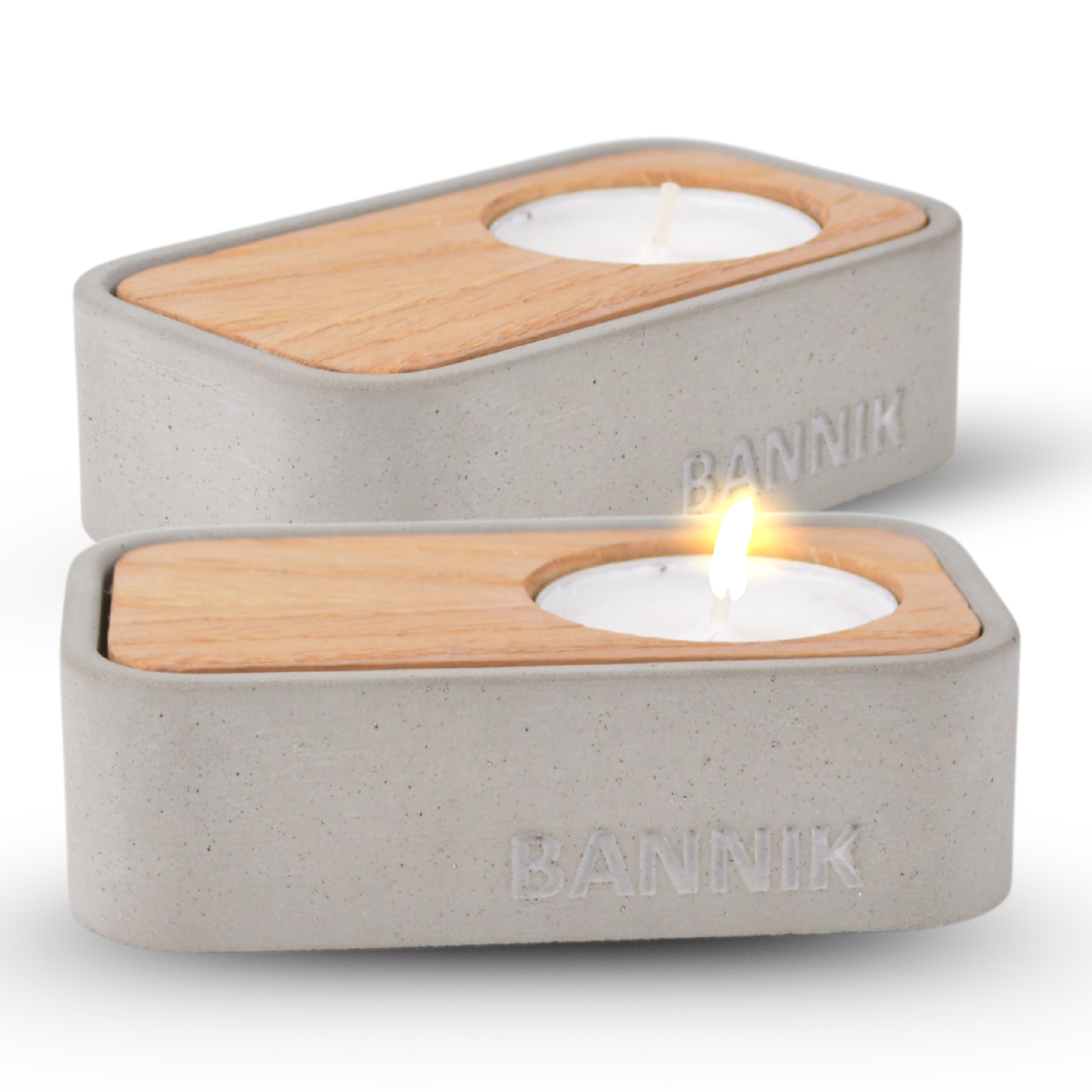 Der BANNIK Kerzenhalter aus Beton & Massivholz verbindet minimalistisches Design mit natürlichen Materialien & sorgt für eine warme, stilvolle Atmosphäre in jedem Raum. Mit kompakten Maßen von 10 × 6 × 3 cm passt er perfekt auf Fensterbänke, Esstische oder Regale – ein echter Blickfang im Alltag & bei besonderen Anlässen.