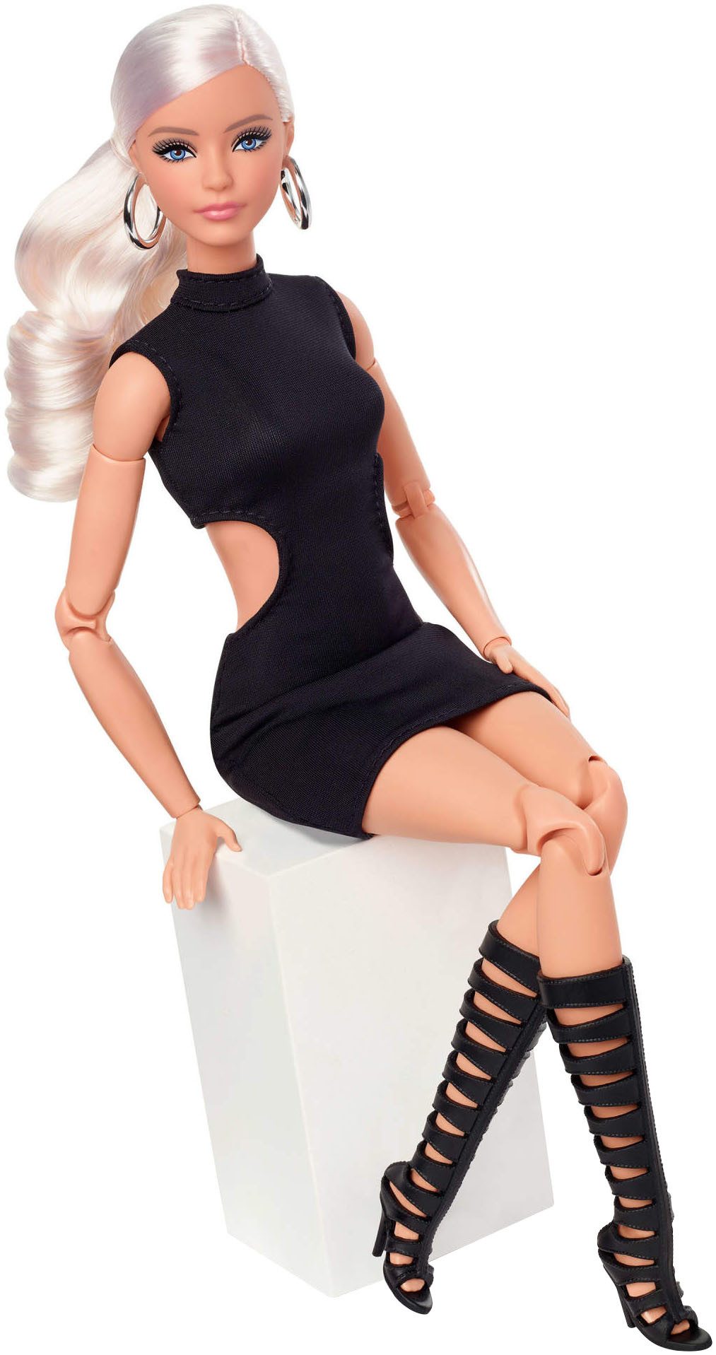 Ausstattung | Schwarzes Kleid mit Stehkragen und Seitenausschnitten kniehohe Gladiatorstiefel |