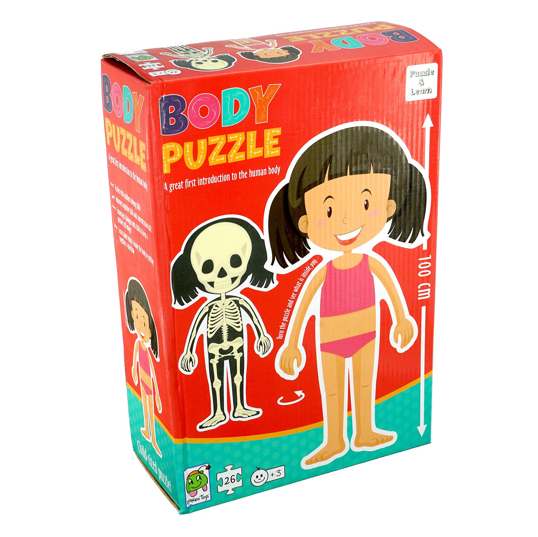 BarboToys XXL Körper-Puzzle Mädchen – Entdecke den menschlichen Körper! Tauche ein in die faszinierende Welt des menschlichen Körpers mit unserem XXL Körper-Puzzle für Mädchen. Dieses riesige Bodenpuzzle bietet doppelseitigen Lernspaß und fördert spielerisch die Entwicklung Deines Kindes. Auf einer Seite zeigt das Puzzle den vollständigen Körper eines Mädchens, auf der anderen Seite können Kinder die Struktur des Skeletts kennenlernen. Mit 26 großen, leicht greifbaren Teilen ist es perfekt für kleine Kinderhände geeignet und ideal für Kinder ab 3 Jahren. Highlights des XXL Körper-Puzzles: Doppelseitiger Lernspaß: Eine Seite zeigt den Körper eines Mädchens, die andere die Skelettstruktur. XXL-Größe: Zusammengesetzt erreicht das Puzzle eine beeindruckende Длина von 100 cm. Fördert wichtige Fähigkeiten: Unterstützt Gedächtnis, Geduld, logisches Denken und die Feinmotorik. Kinderfreundliches Design: Große, robuste Teile sind ideal für kleine Hände. Spielend lernen: Perfekt, um Formen zu erkennen, Konzentration zu stärken und die visuelle Wahrnehmung zu fördern. Produktdetails: Teileanzahl: 26 große, leicht greifbare Elemente Puzzlegröße: 100 cm Длина Altersempfehlung: Ab 3 Jahren Verpackungsmaße: 21,5 x 11,8 x 31 cm Ein Geschenk, das begeistert! Das BarboToys XXL Körper-Puzzle ist nicht nur ein lehrreiches Spielzeug, sondern auch ein einzigartiges Geschenk für Geburtstage oder besondere Anlässe. Es begeistert Kinder und fördert gleichzeitig ihre Entwicklung. Entdecke die Welt des menschlichen Körpers – mit dem BarboToys XXL Körper-Puzzle für Mädchen!