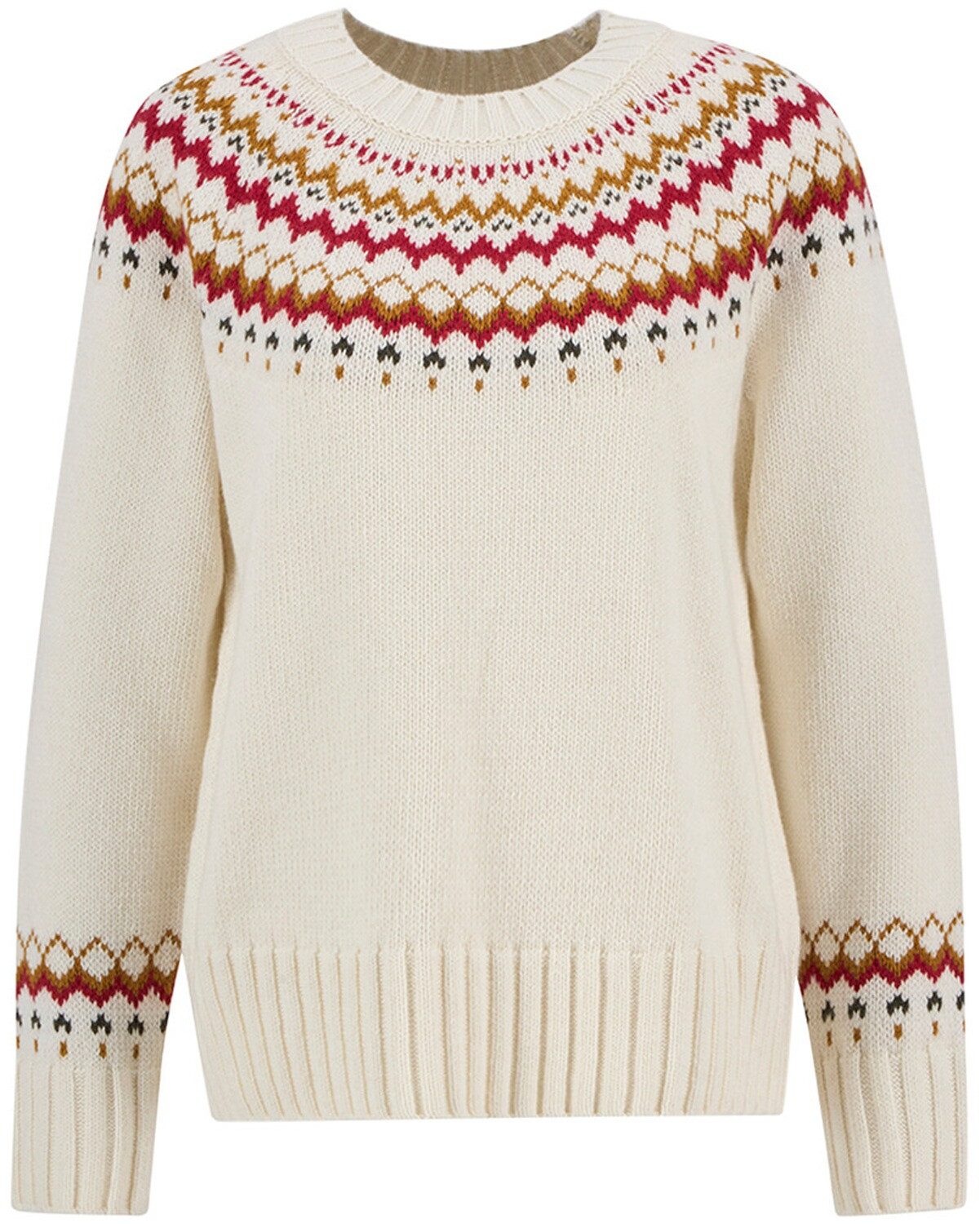 Der Damen Pullover Tidal von Barbour besticht durch sein charakteristisches Fair Isle Design, das sowohl die Vorder- als auch die Rückseite im Schulterbereich und an den Armabschlüssen ziert. Mit einem klassischen Rundhalsausschnitt und langen Raglanärmeln sorgt er für eine bequeme Passform, während die gerippten Abschlüsse an den Ärmeln und am Saum zusätzlichen Komfort bieten und dem Look eine strukturierte Note verleihen. Hergestellt aus einem hochwertigen Baumwolle-Schurwolle-Mix mit Kunstfaseranteil, bietet der Pullover nicht nur ein angenehmes Tragegefühl, sondern auch Strapazierfähigkeit für den Alltag. Ein schmales Metall-Logo am Nacken rundet das Design stilvoll ab. Ob in Kombination mit Jeans für einen lässigen Look oder zu einer Chino-Hose für einen eleganteren Auftritt – der Tidal Pullover ist die ideale Wahl für Damen, die Wert auf modernen Stil und britischen Charme legen. Oberstoff: 59% Baumwolle, 33% Schurwolle, 8% Polyamid