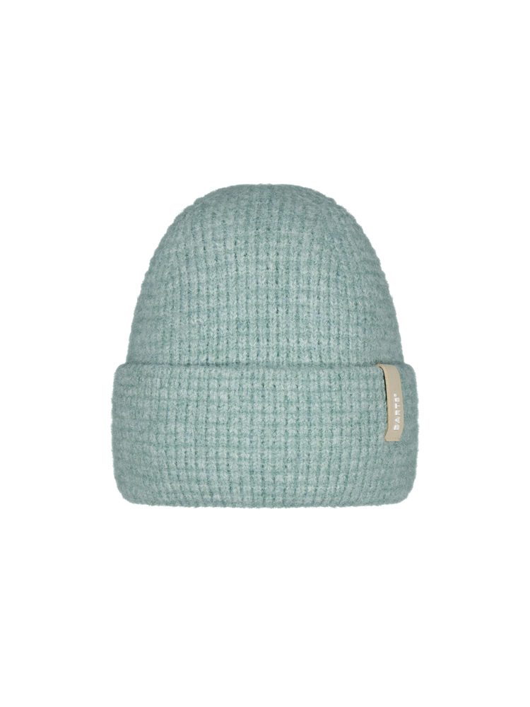 Umschlag-Beanie mit den Eigenschaften: Wickelhut für Damen; 97% recyceltes Polyester; Elastisch; Quadratische Strickstruktur; Deckelhöhe: 9 cm