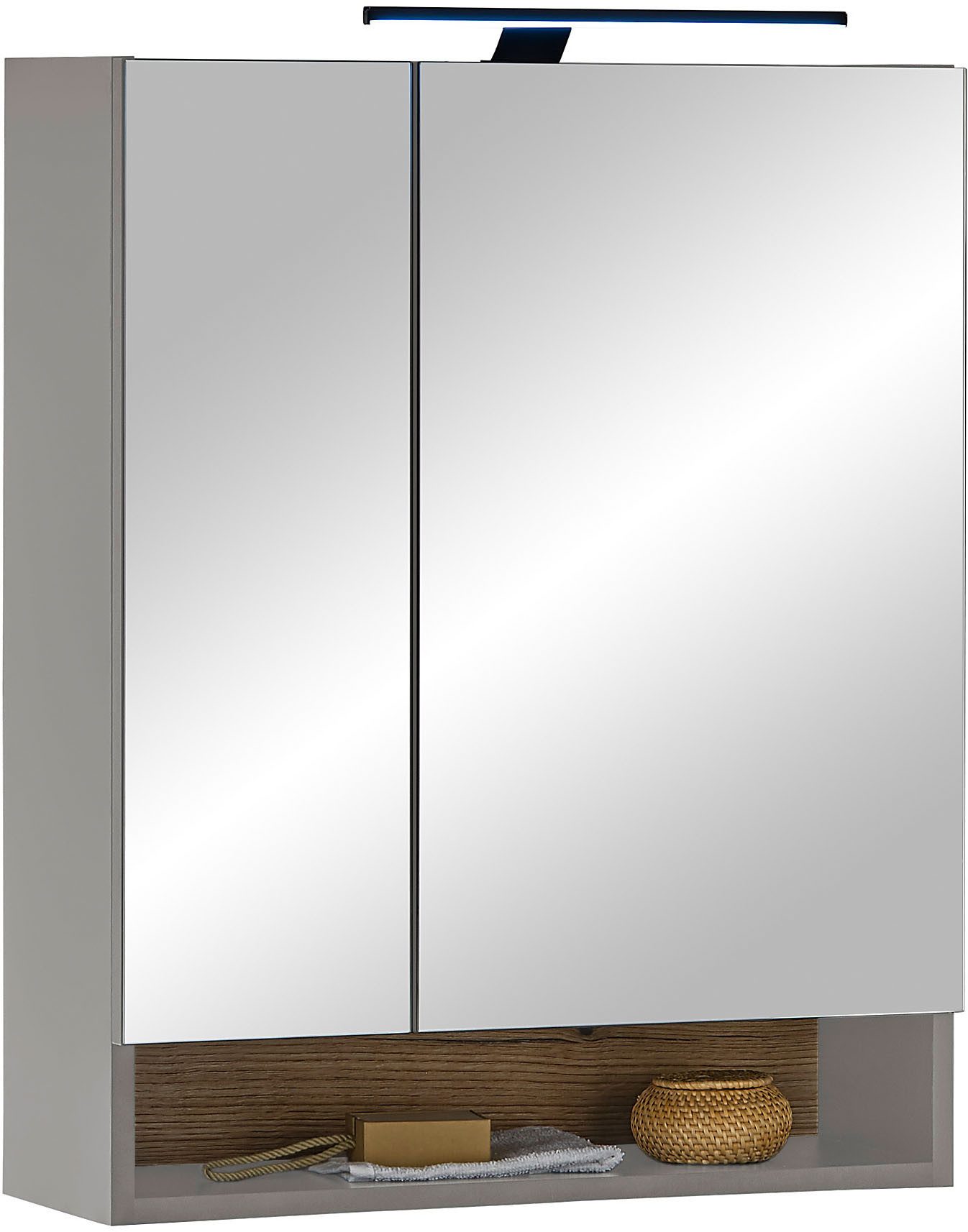 Wissenswertes | 2 Spiegeltüren, 1 Einlegeboden, 1 offenes Fach, LED-Beleuchtung FSC-Mix 70% |