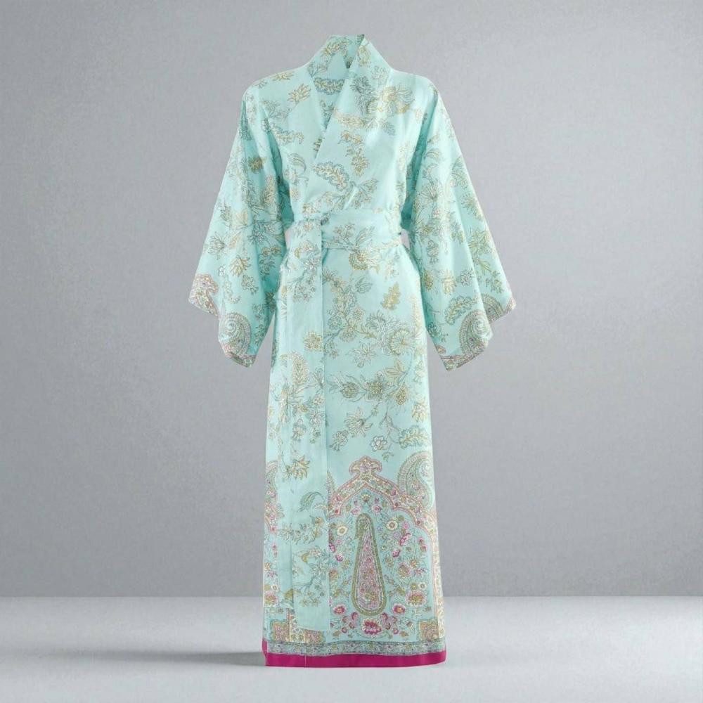 Eleganter Kimono mit Schalkragen und Bindegurt aus hochwertigem Baumwollsatin.