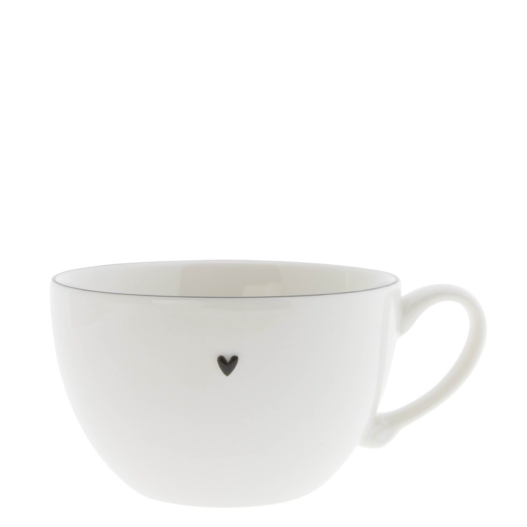 Lieferumfang: 1 weiße kleine Suppentasse / XL Frühstückstasse für 450ml mit kleinem schwarzen Herz