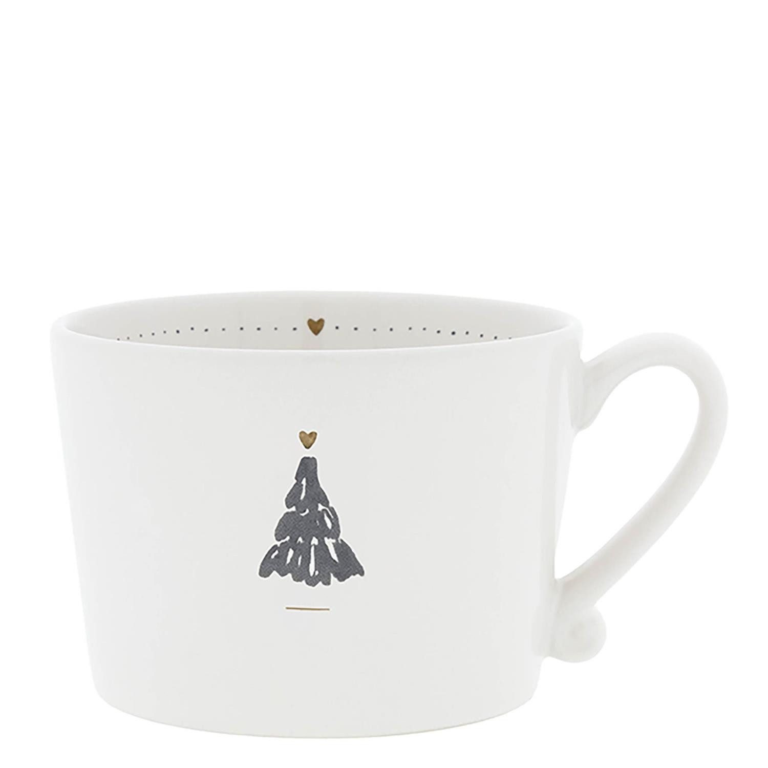 Lieferumfang: 1 weiße Tasse CHRISTMAS TREE mit schwarzem Tannebaum Motiv und kleinem Herz