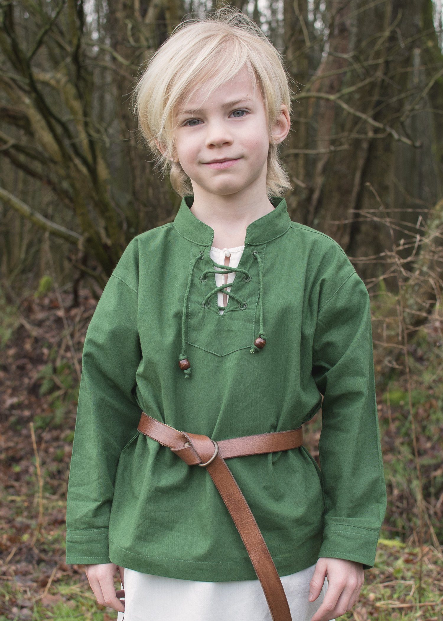 1x Kinder Mittelalter-Hemd Colin, mit Schnürung, grün