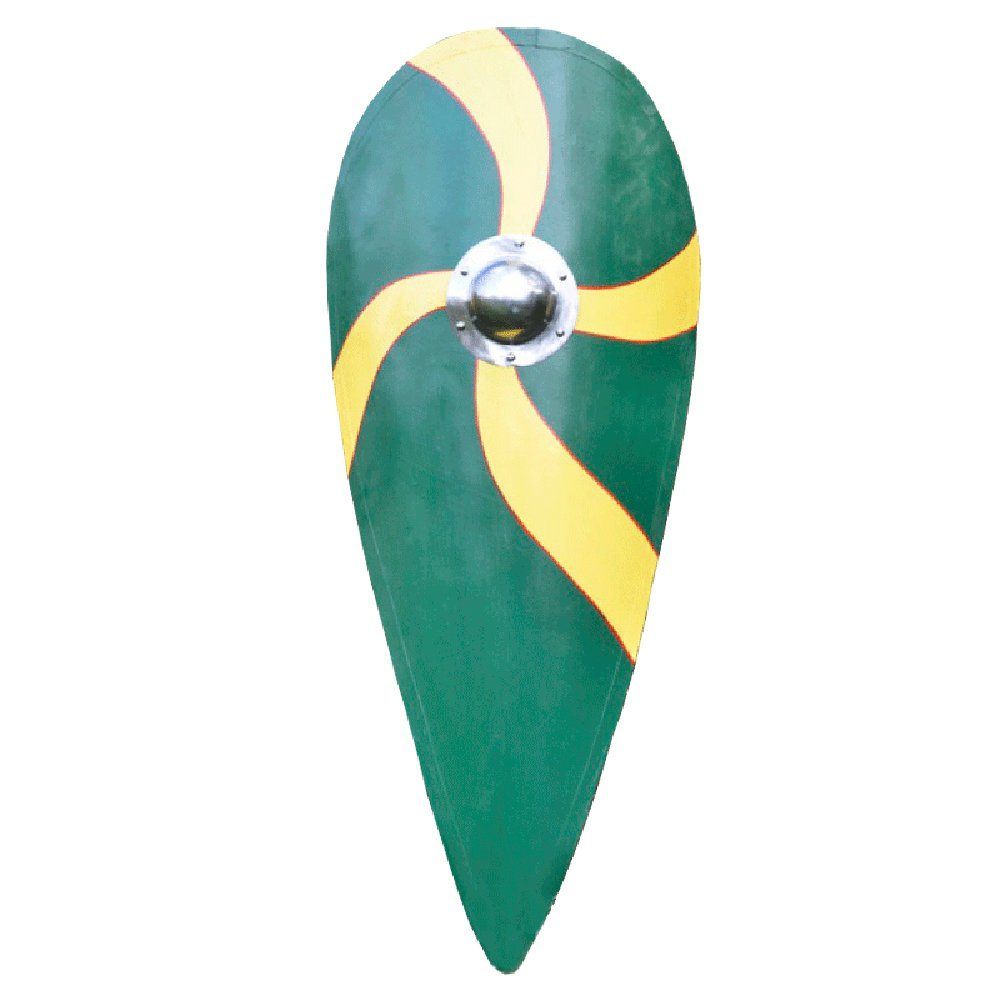 Lieferumfang: 1x Normannenschild aus Holz, Grün-Gelb