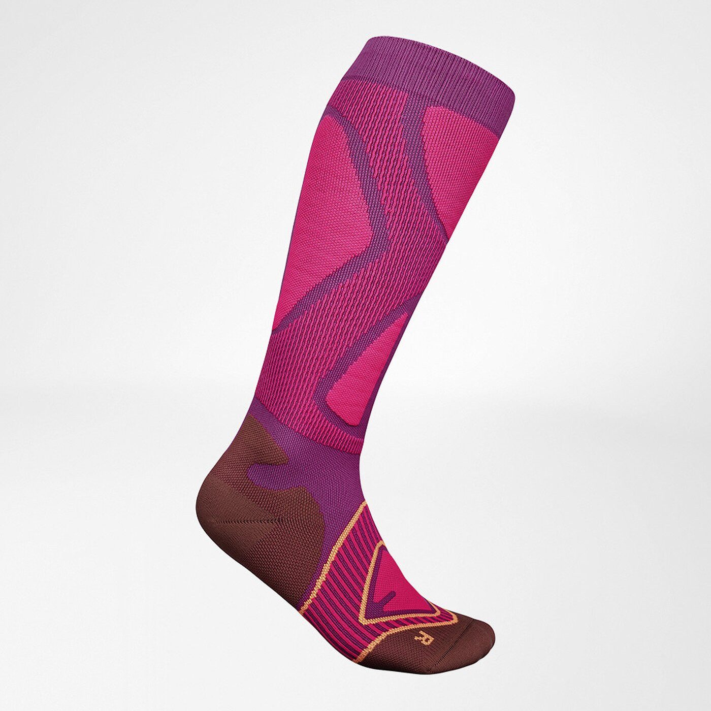 Die ?Ski Performance Compression Socks? unterstützen die Muskulatur der Wade durch spezielle Kompressionszonen, verringern Muskelvibrationen und geben Power für die nächste Abfahrt. Verschiedene Polsterzonen reduzieren den Druck auf Schienbein, Spann, Ferse und Fußsohle und sorgen für hohen Tragekomfort im Skischuh. Eine Aussparung im Bereich der Achillessehne entlastet diese nachhaltig und beugt Überreizungen vor. Die Skistrümpfe sind langlebig, atmungsaktiv und hautverträglich.