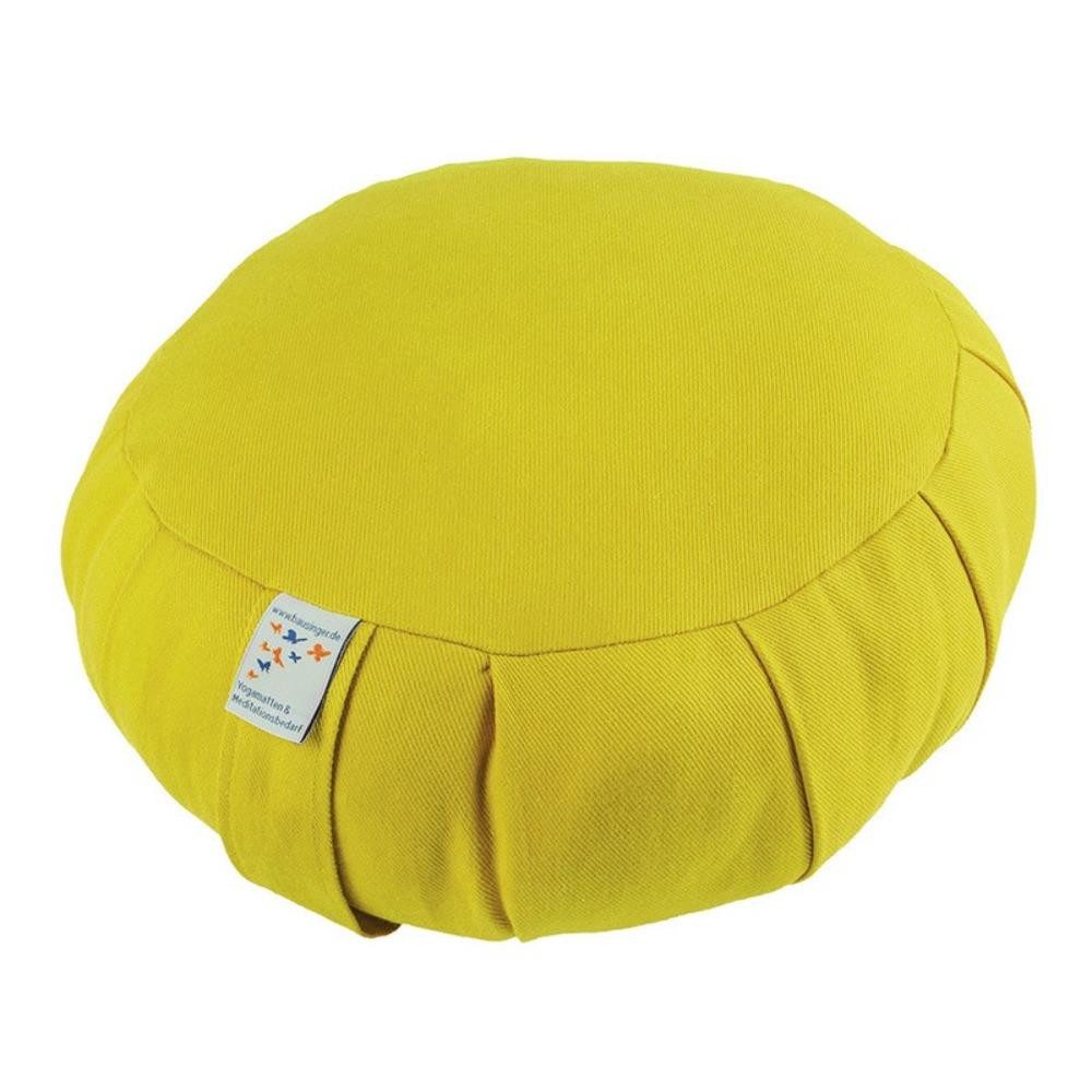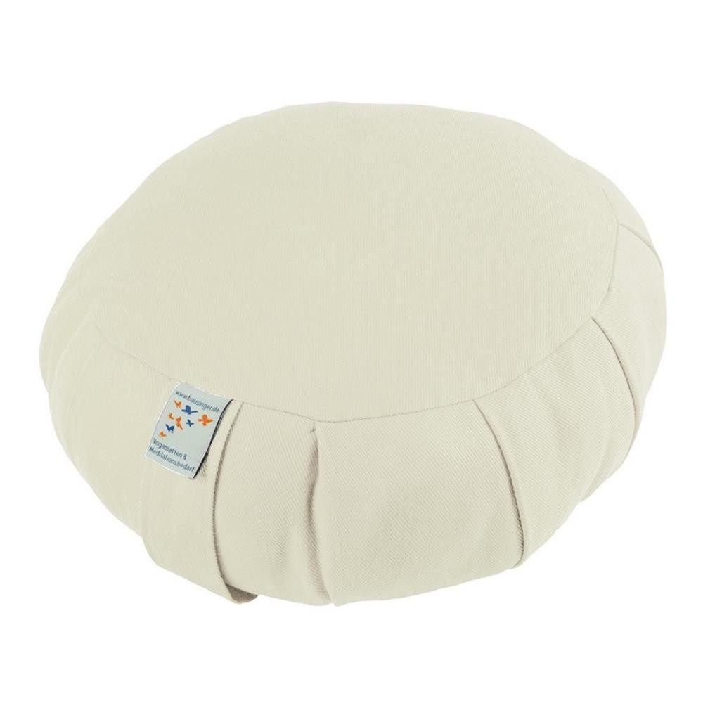 Rundes Meditationskissen, Durchmesser 35 cm, Höhe ca. 15 cm, Bezug aus Bio-Baumwolle. Gefüllt mit Dinkelspelz aus kontrolliert biologischem Anbau.