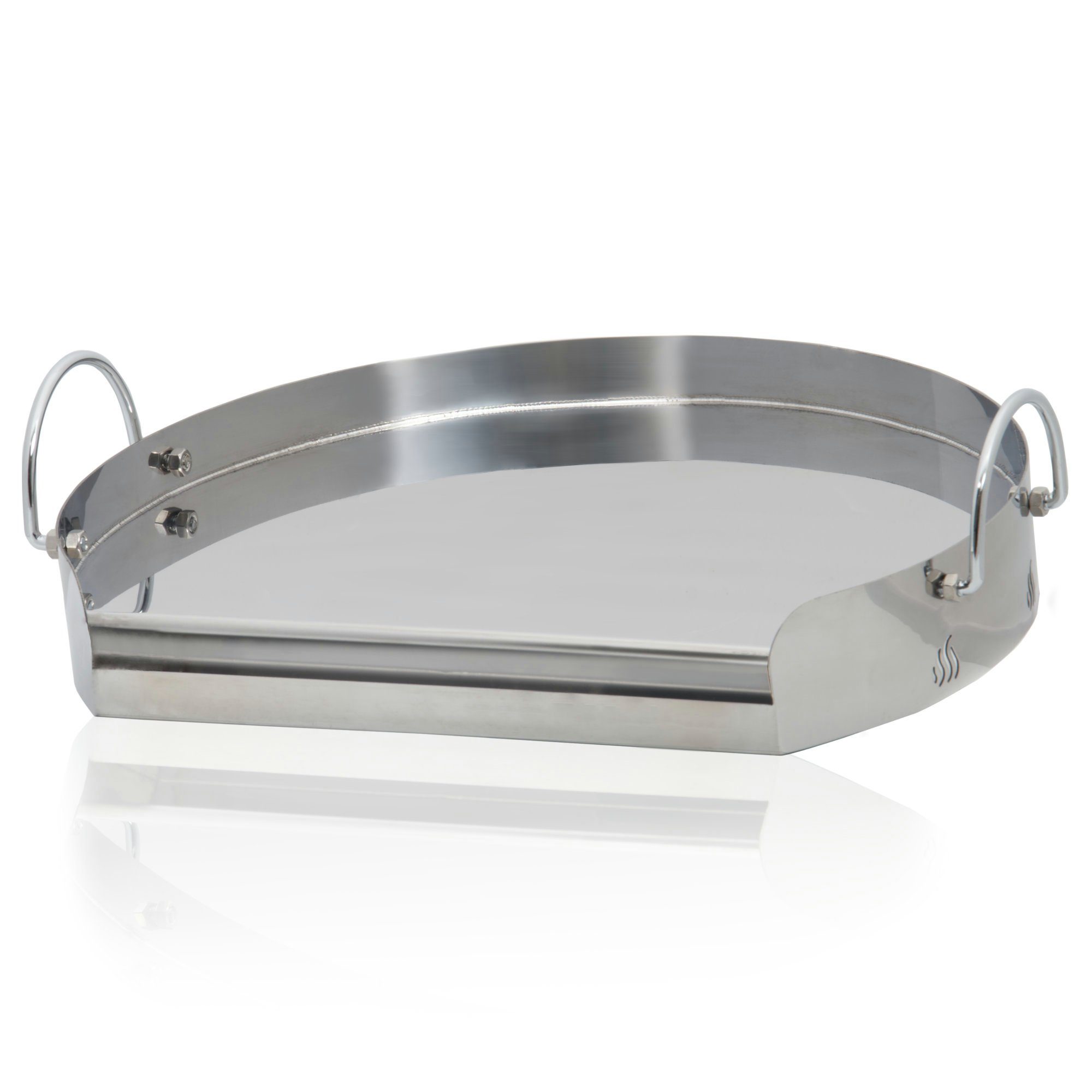 Die runde Grillplatte können Sie einfach auf Ihre Grillfläche legen und sofort nutzen. Die, aus 2-mm-starken Edelstahl gefertigte, Grillplatte wiegt ca. 4,5 kg und passt in viele Gasgrills. Mit einer gleichmäßigen Verteilung der Wärme sorgt die Grillplatte für ein perfektes Grillergebnis. Auf der 45,5 x 34 cm großen Grillfläche hat Ihr Grillgut viel Platz auf der Grillplatte. Sie und Ihre Gäste werden begeistert sein. Mittels der Rinne können Bratreste und überschüssiges Fett / Öl ganz einfach "entsorgt" werden, um weiterhin sauber auf der Plancha zu grillen. So wird der Geschmack Ihrer Speisen nicht verfälscht und Sie erzielen ein ausgezeichnetes Grillergebnis.