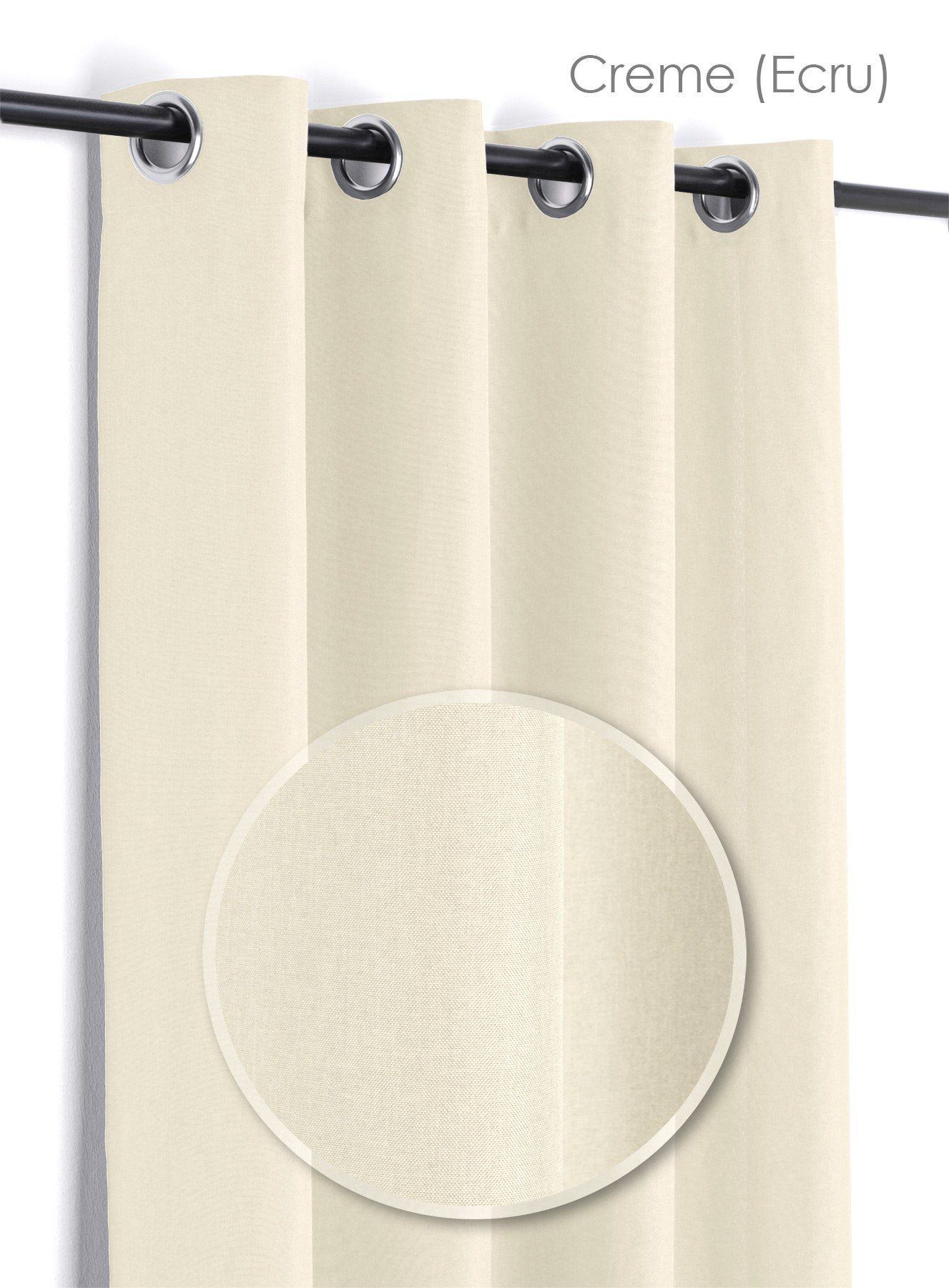 Vorhang in Leinen Optik aus der Leinen Optik-Brilliant Kollektion in vielen wählbaren Farben. Mit Ösen Aufhängung, 4 cm Innendurchmesser. Pflegeleicht und Fleckabweisend. Material: 100% Polyester, Pflege: Maschinenwäsche bis 40 Grad.