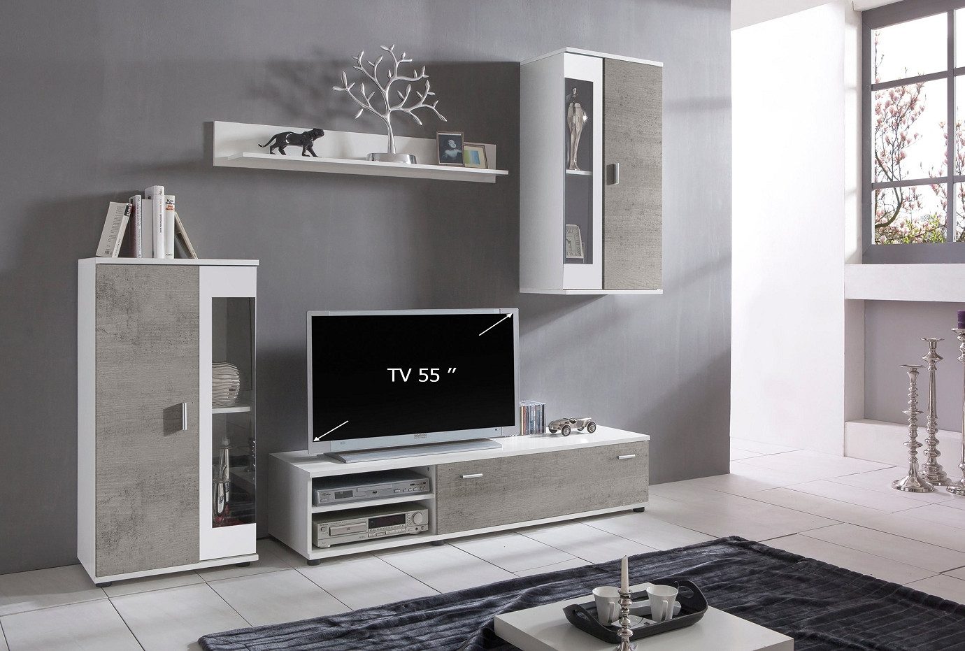 Die Wohnwand ist in einer einzigartigen Betonoptik gefertigt. Es handelt sich dabei um eine graue Betonoptik, die von schlichten weißen Details einwandfrei abgerundet wird. Da es sich um ein recht schlichtes Design handelt, kann die Wohnwand beliebig zu jeder weiteren Wohneinrichtung eingesetzt werden. Die gesamte Oberfläche ist zudem mit einer Melaminharzbeschichtung ausgestattet, sodass sie gut vor Kratzern und Flüßigkeiten geschützt ist.
