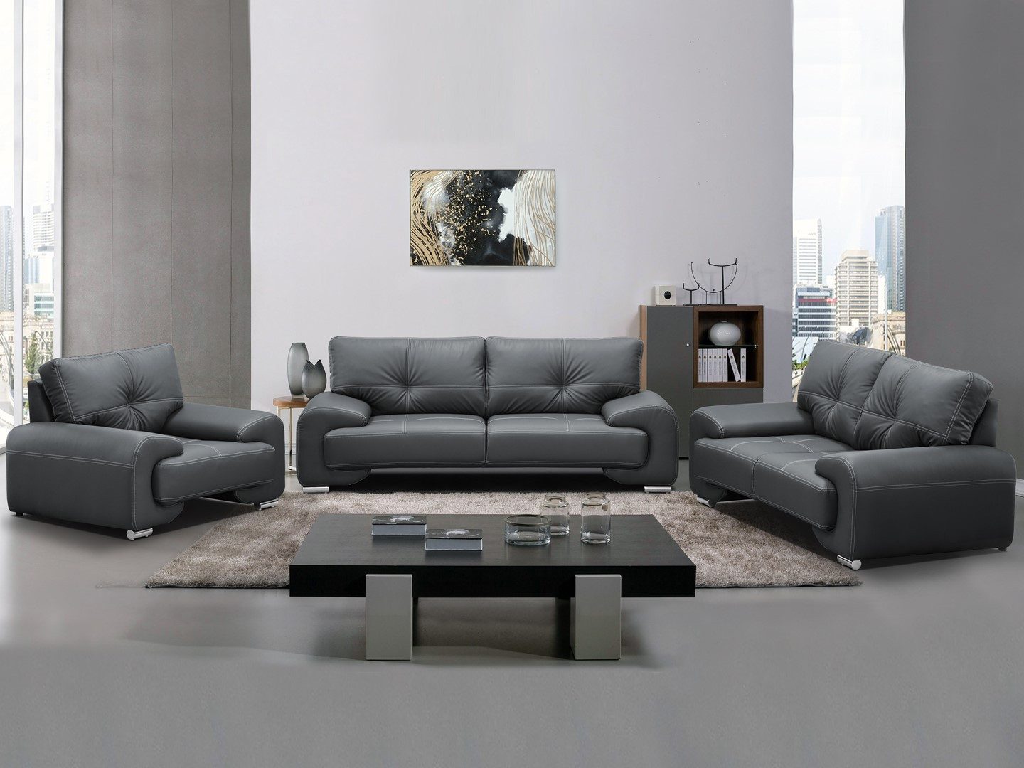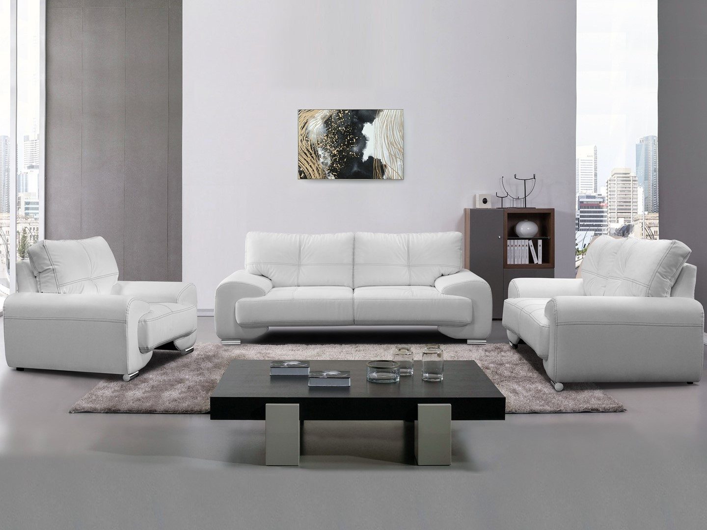 Das Sofagarnitur Set Omega ist eine ausgezeichnete Wahl für alle, die ein bequemes und zugleich stilvolles Möbelstück für ihr Wohnzimmer suchen. Es wird auch sehr gut in einem Kinderzimmer oder Jugendzimmer funktionieren. Set bestehend aus Sessel, 2-Sitzer-Sofa und 3-Sitzer-Sofa Ein starker Akzent, der die visuelle Attraktivität des Sofas Omega unterstreicht, sind die Beine in der Farbe Chrom. Das moderne Sofagarnitur Omega ist mit Kunstleder mit einer subtilen Textur gepolstert.