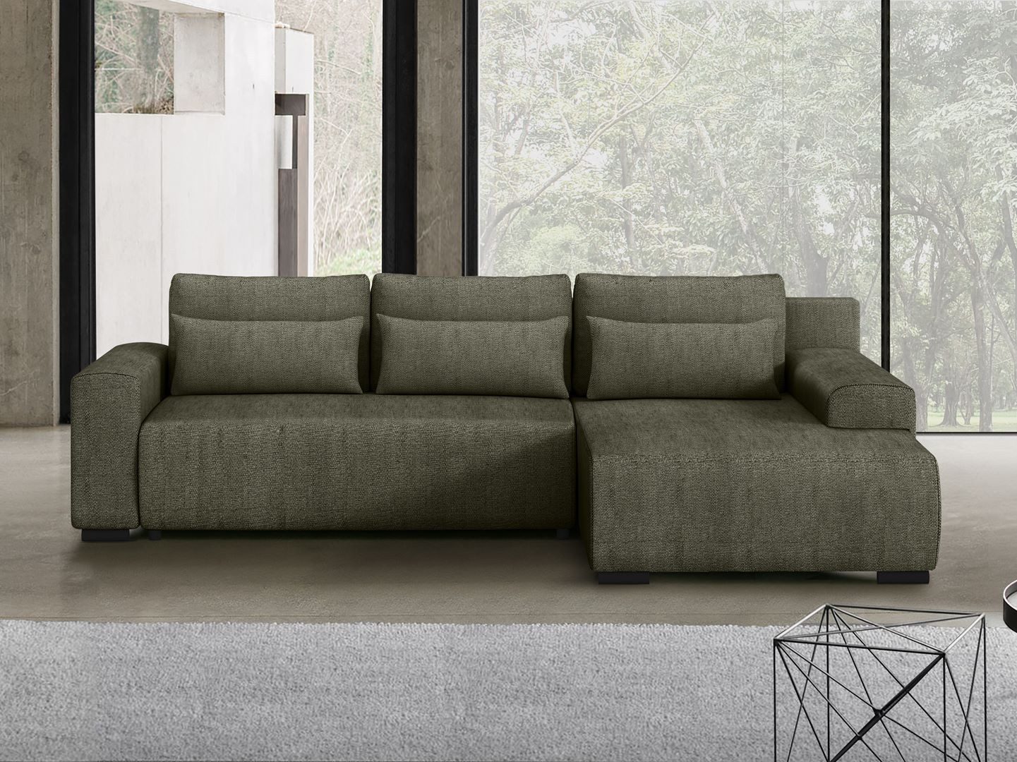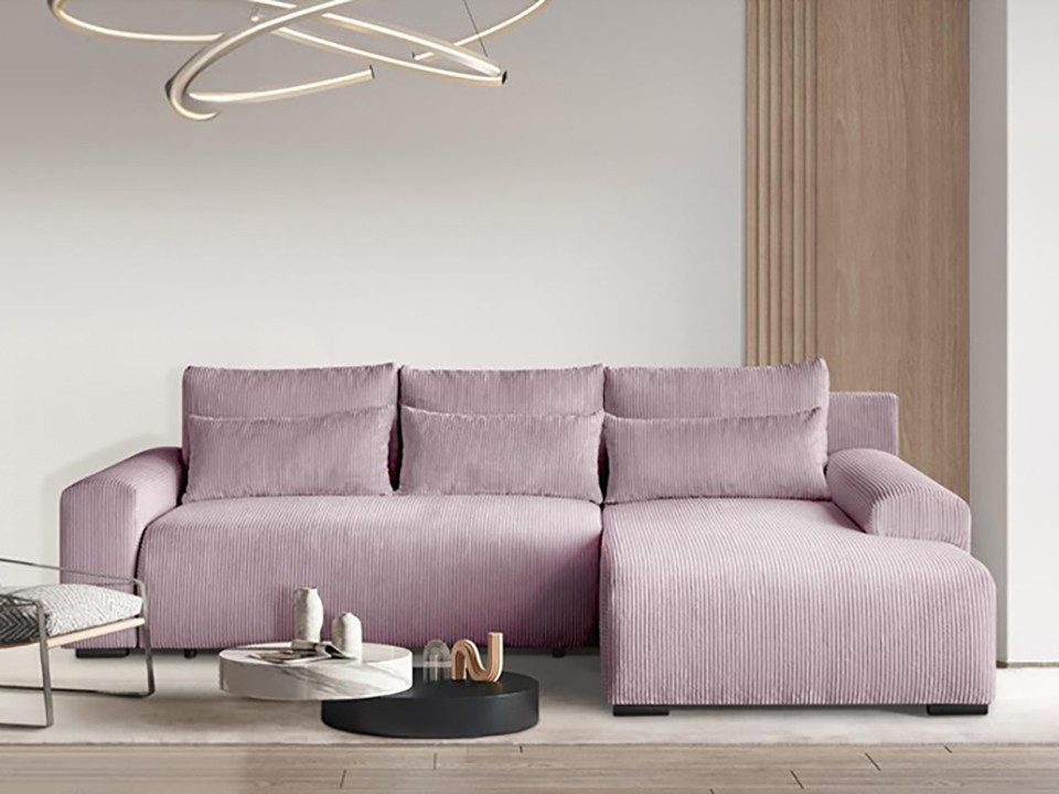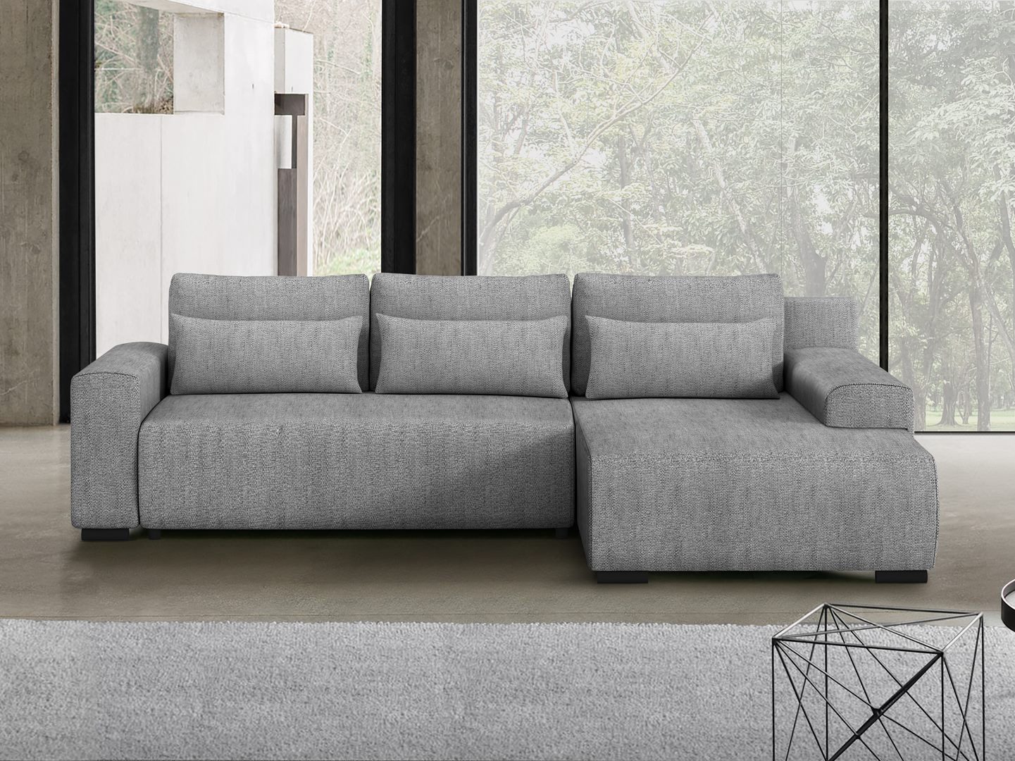 Wir laden Sie ein, ein ungewöhnliches Ecksofa Benny zu entdecken, das außergewöhnlichen Komfort und Funktionalität in Ihr Interieur bringt. Unser L-förmiges Corner Sofa Benny, gepolstert mit 3D-Streifen, ist eine Kombination aus modernem Design und praktischen Lösungen. Einer der wichtigsten Vorteile dieses Sofas ist seine Schlaffunktion mit Liegefläche von 140×218 cm. Auf einfache Weise können Sie es in ein bequemes Bett verwandeln, was es ideal macht, wenn Gäste über Nacht bleiben. Der bequeme Sitz, der auf einer Wellenfeder basiert, bietet nicht nur Komfort während des täglichen Gebrauchs, sondern auch eine hervorragende Unterstützung für Ihre Wirbelsäule. Es verfügt über einen Bettwäschebehälter, der diskret im Inneren des Möbels versteckt ist. Nicht nur Bequemlichkeit, sondern vor allem Praktikabilität – das sind die Merkmale des stilvoll Ecksofas Benny.