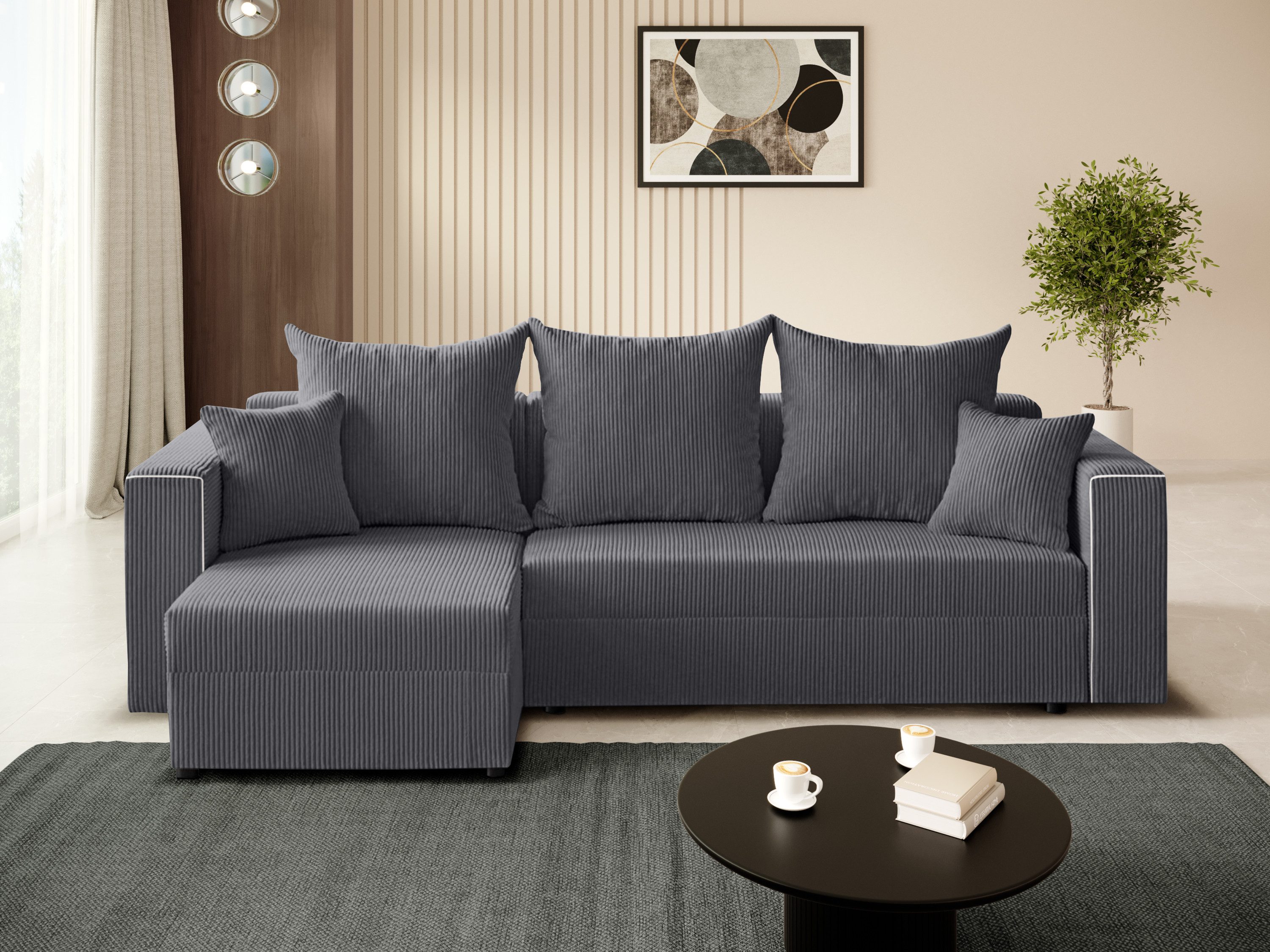 Ein stilvolles und funktionales Ecksofa in L-Form – perfekt für moderne Wohnräume. Dank der modularen Bauweise und der universellen Ottomane passt es sich jedem Raumlayout an.
