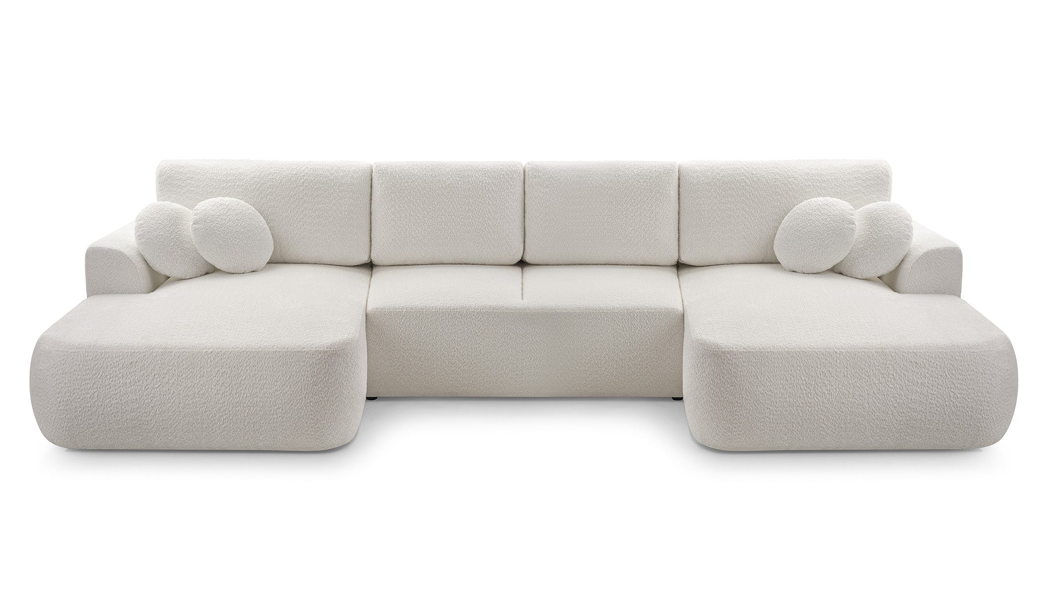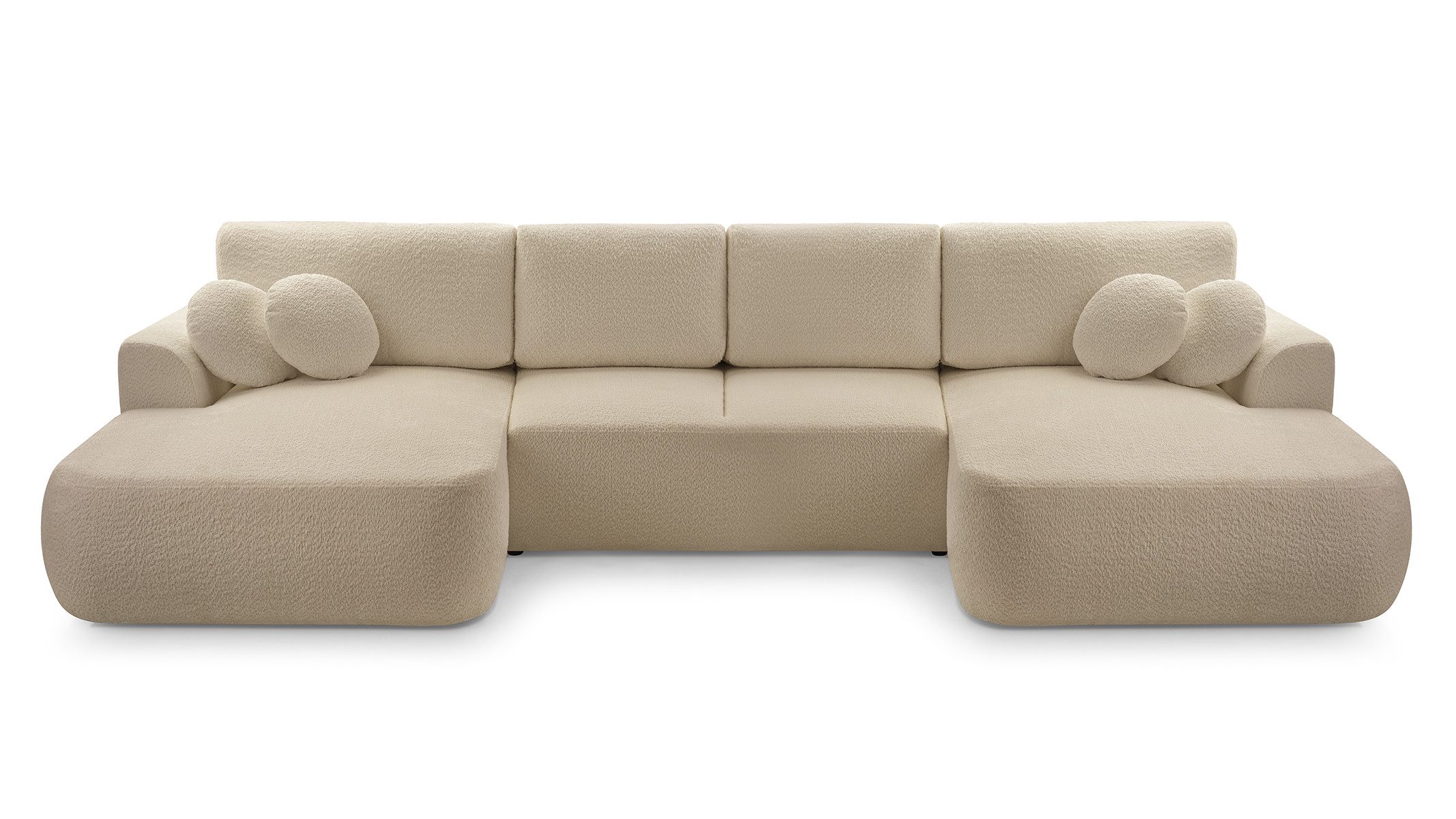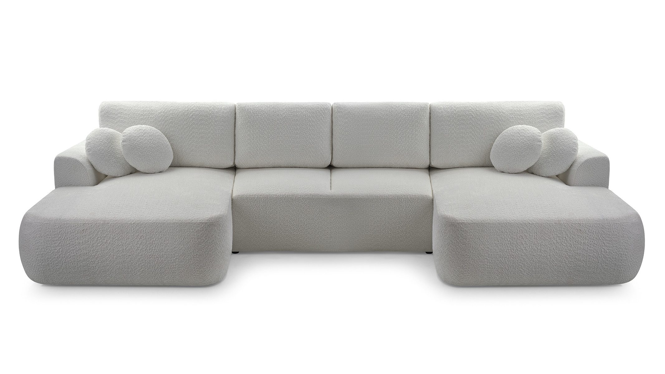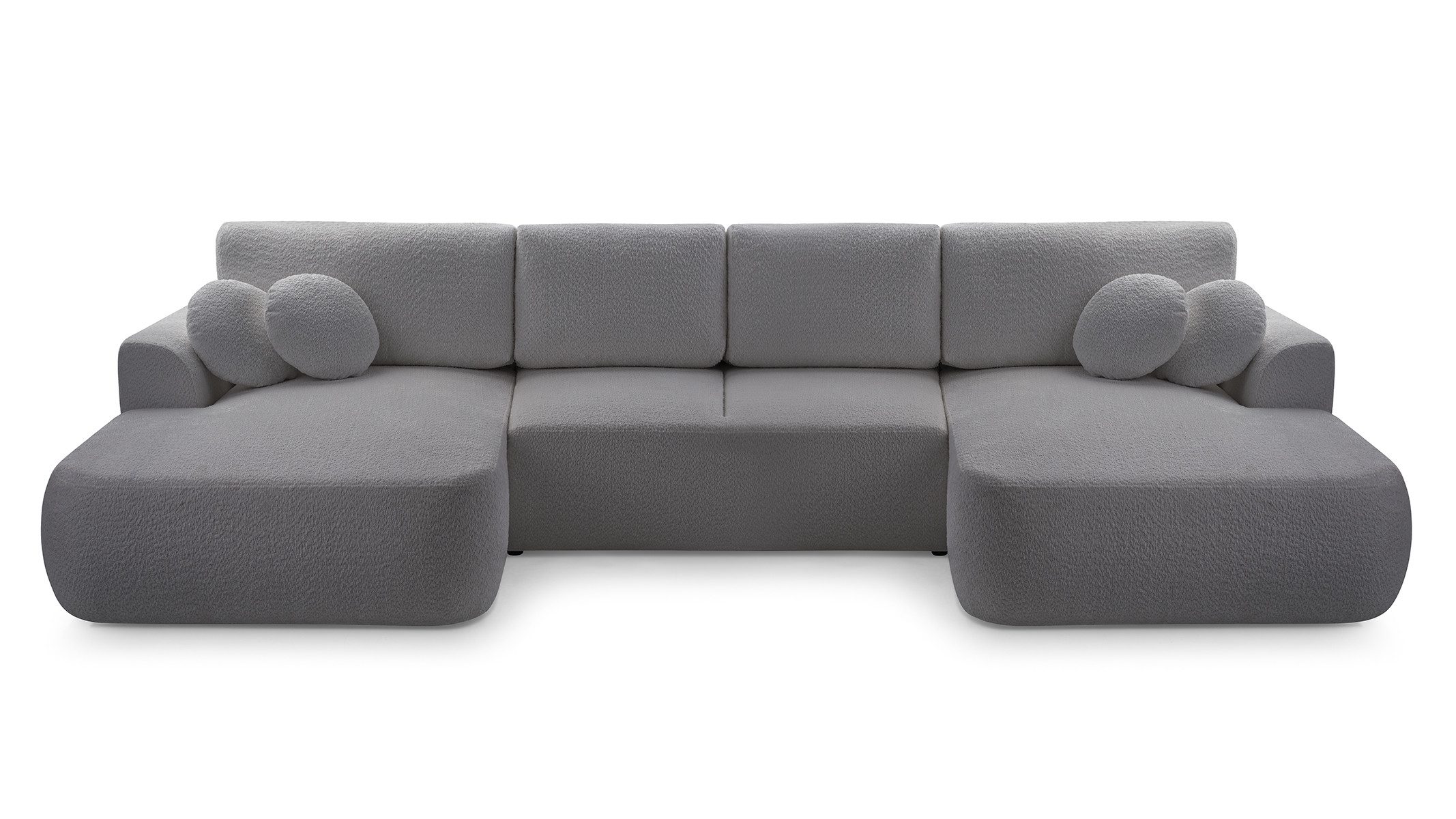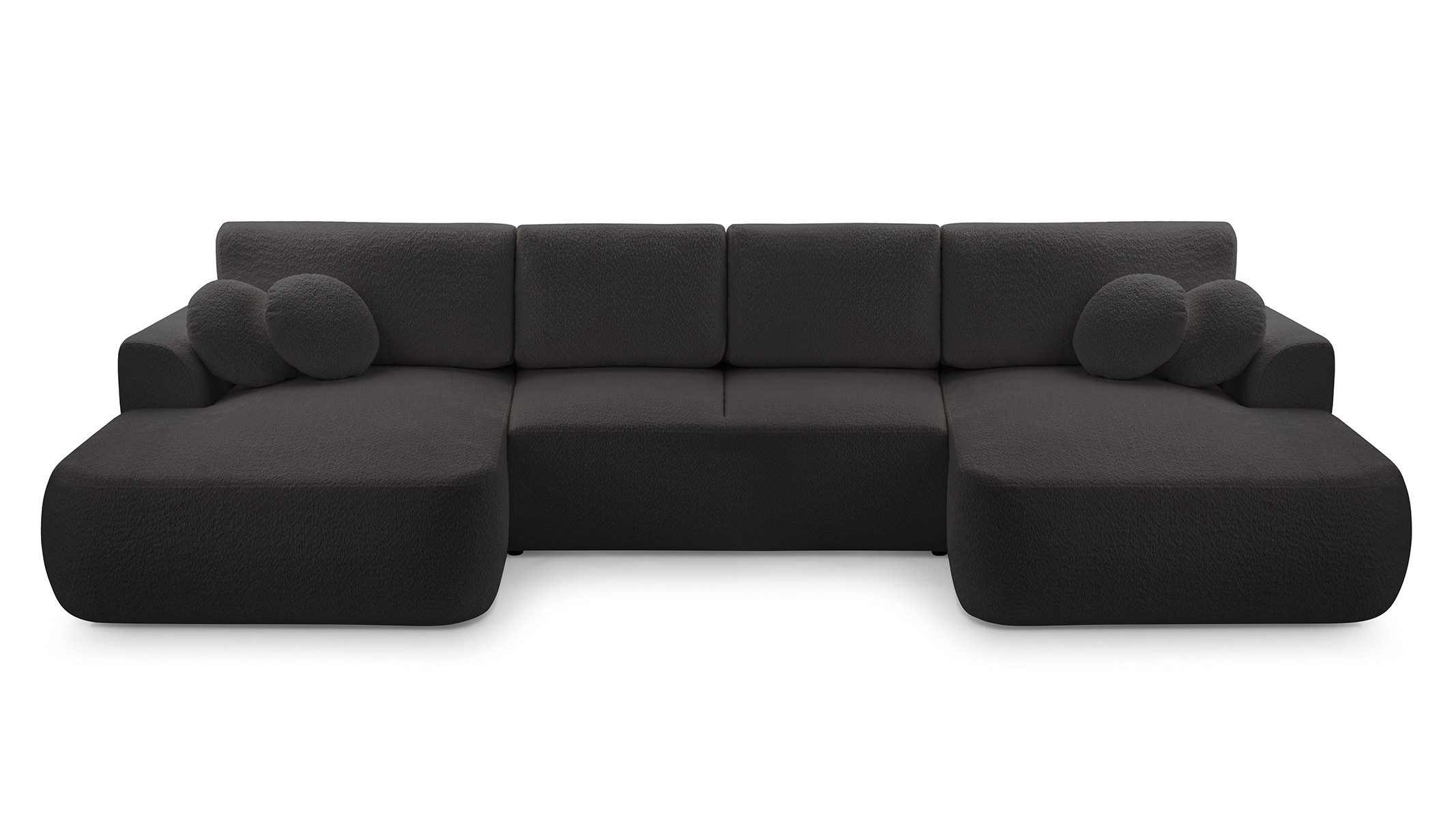 Das Ecksofa mit Schlaffunktion VENTO U ist die perfekte Verbindung von modernem Design, hohem Komfort und praktischer Funktionalität. Mit seiner großzügigen Liegefläche von 304×140 cm bietet es viel Platz zum Entspannen und kann dank der Schlaffunktion im Handumdrehen in ein bequemes Bett verwandelt werden.