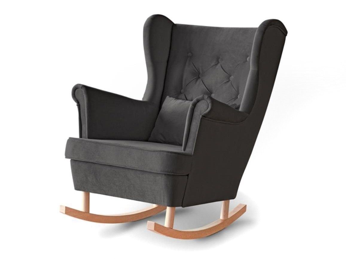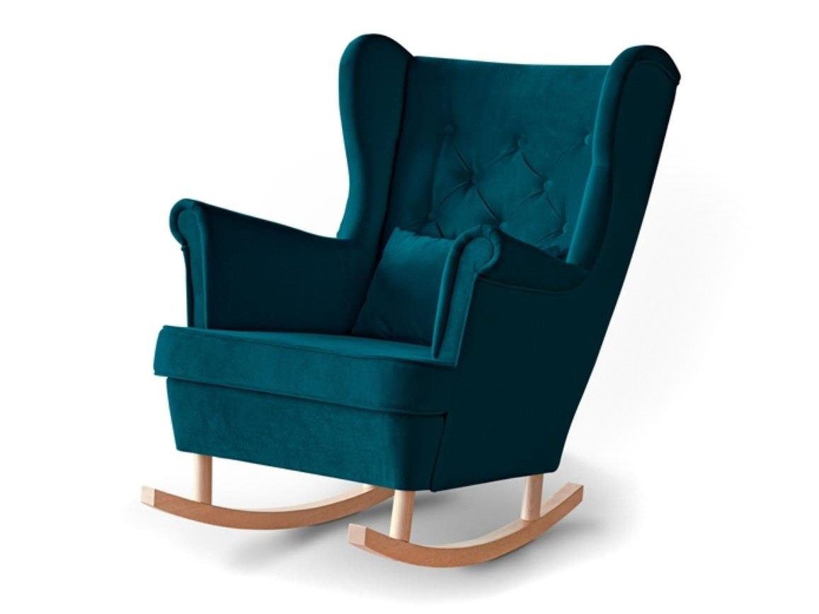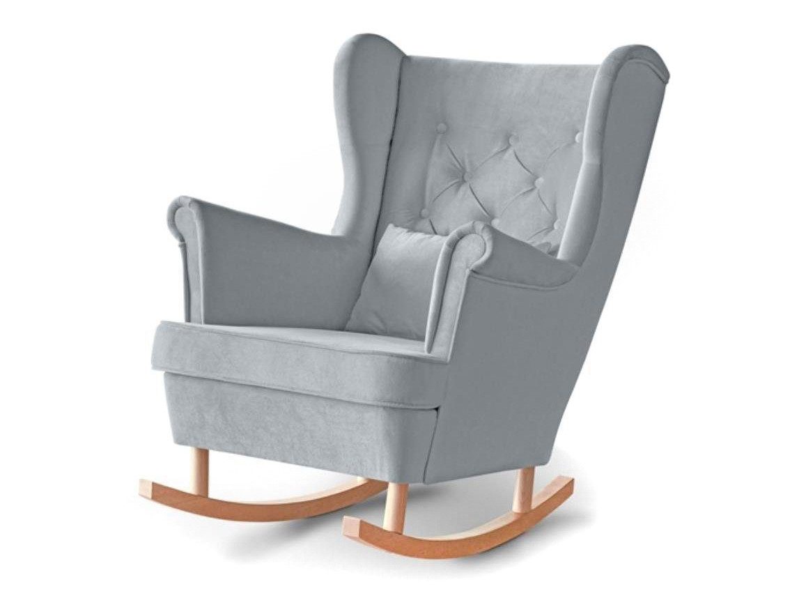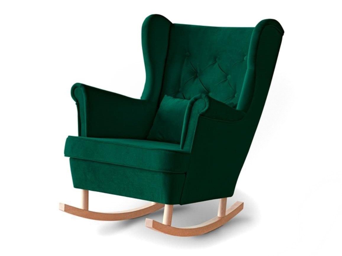 Luxuriöser Schaukelsessel mit bequemem Wellfedersitz, der Ihnen unvergleichlichen Komfort und Eleganz bietet. Hergestellt aus hochwertigen Materialien, ist dieser Sessel ein großartiger Vorschlag für diejenigen, die Wert auf Stil und Komfort legen. Die Polsterung aus weichem und luxuriösem Velours verleiht dem Sessel einen einzigartigen Charme. Darüber hinaus können Sie die Farbe der Beine aus drei stilvollen Optionen wählen: Weiß, Buche oder Wenge.