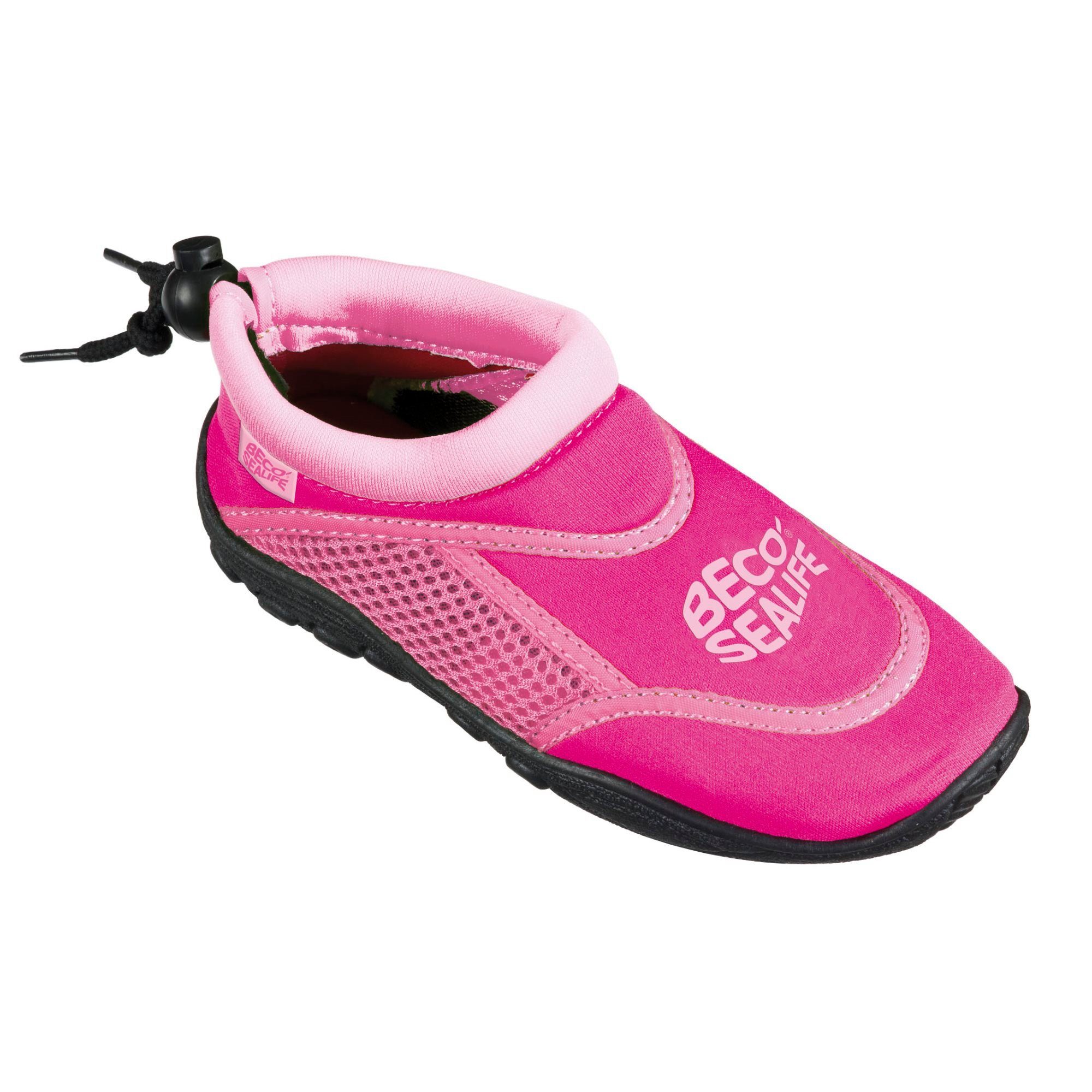 Mit den BECO SEALIFE Kinder-Wasserschuhen ist Wasserspaß im Hallenbad, im Freibad und am Strand angesagt! Die robusten Surfschuhe von BECO kommen in leuchtenden Farben daher und sorgen für einen sicheren Gang auf nassem Untergrund. Die Sohle aus Gummi ist rutschfest und schützt zudem am Strand vor spitzen Steinen. Die Wasserschuhe können problemlos im Planschbecken getragen werden und gewährleisten auch dort einen sicheren Stand. Ein Netzeinsatz sorgt für eine hohe Atmungsaktivität der Neopren-Surfschuhe von BECO.