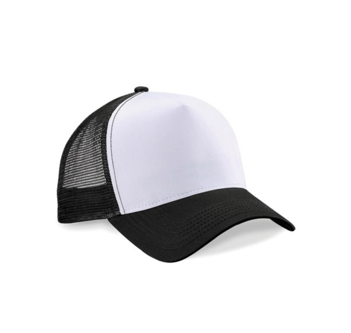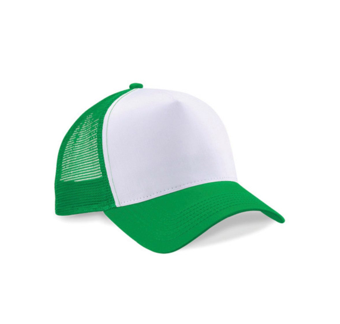 - Beechfield Trucker Retro Cap Snapback Kappe 5-Panel - Snapback-Größeneinsteller im Retro-Stil - Fünf Segmente - Vorgebogenes Schild - Farben mit White: Frontsegment Weiß, Schirm und Netz farbig - Front + Schirm: 100% Baumwolle, Netz: 100% Polyester - nicht waschbar