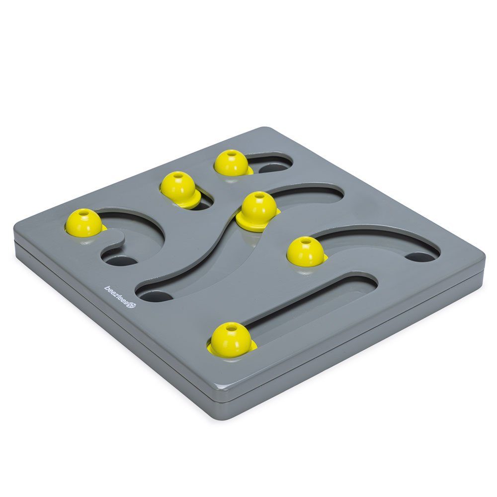 Das Beeztees Brain Game Looki ist ein tolles Denkspiel für Hunde. Dieses Trainingsspiel besteht aus Kunststoff und hat 6 Fächer, in denen Hundeleckerlis versteckt werden können. Die Leckereien können dann mithilfe des Schiebedeckels versteckt werden. Der Deckel hat ein Loch, damit der Geruch des Snacks von Ihrem Hund gut wahrgenommen werden kann. Wenn er das Hundeleckerli gefunden hat, kann es gegriffen werden, indem der Deckel mit einer Pfote oder Schnauze verschoben wird. Auf diese Weise wird Ihr Hund auf spielerische Weise belohnt. Das Spielen mit diesem Denkspiel trägt zur geistigen Anregung bei. Außerdem lernt Ihr Hund, seine Nase richtig zu benutzen. Wussten Sie, dass nur 10 Minuten Spielzeit einem langen Spaziergang entsprechen?