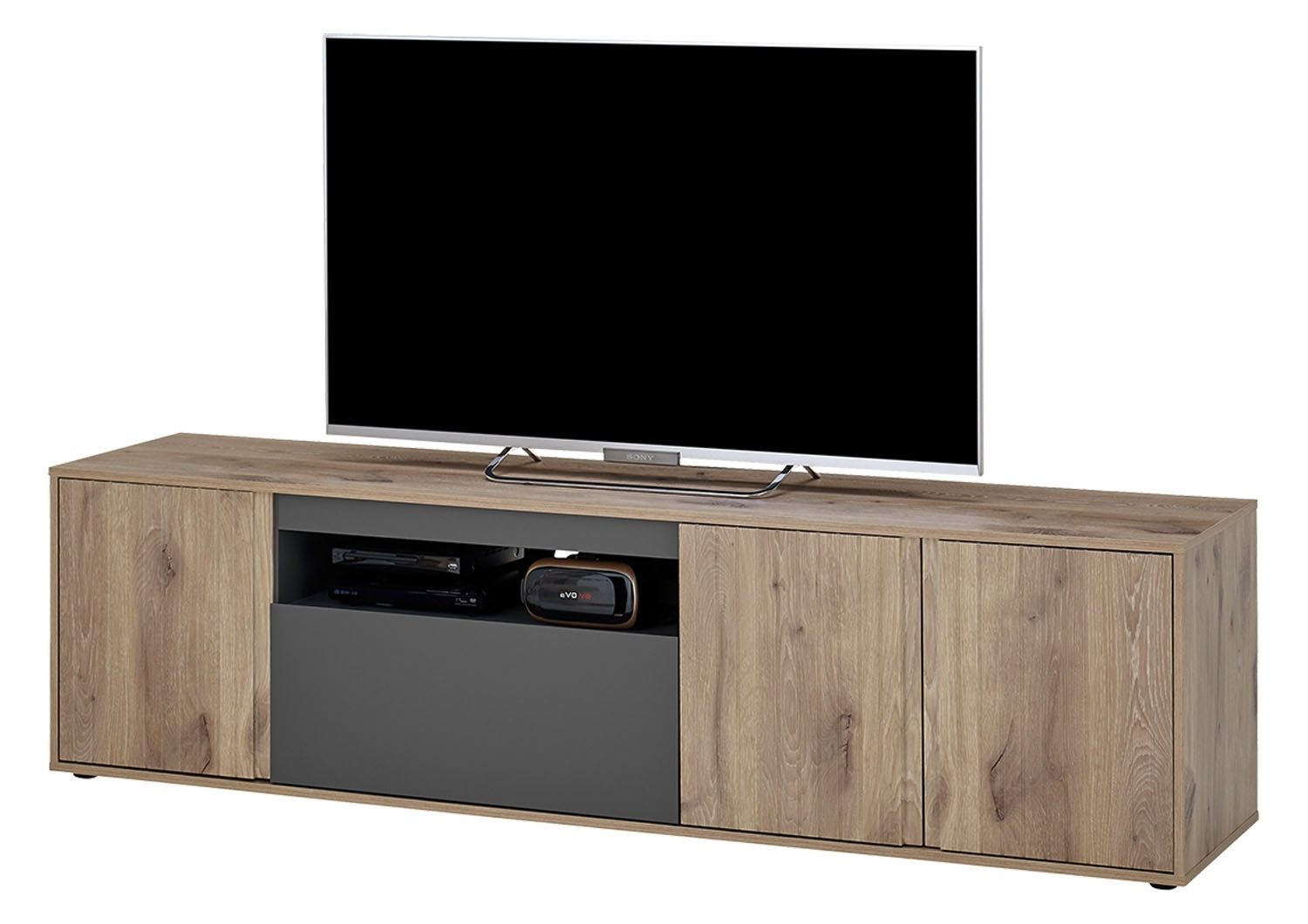 Lieferumfang | 1 TV Lowboard mit 3 Türen, 1 offenem Ablagefach mit Kabeldurchlass und 1 Schublade |
