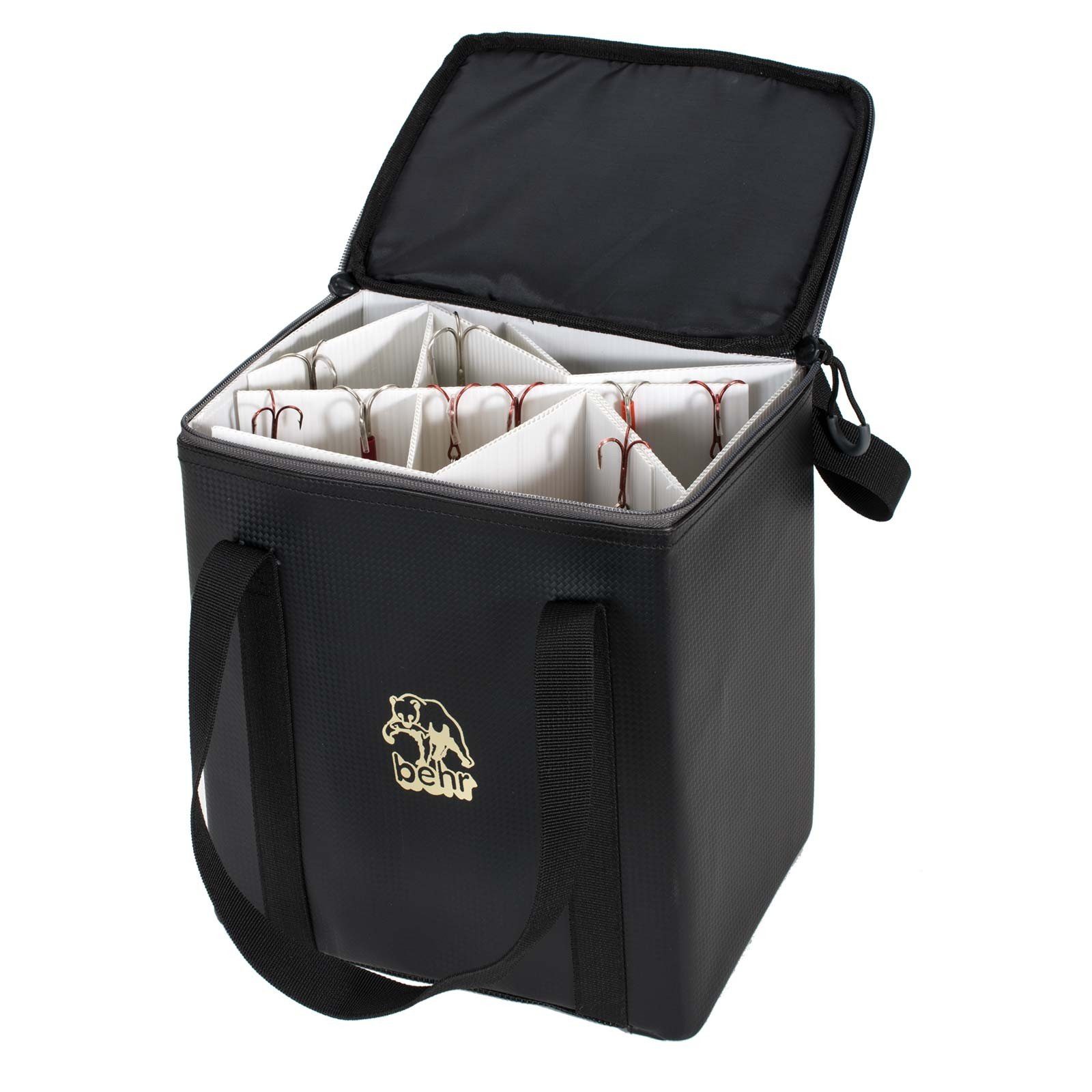 Diese stabile und schöne Seabehr Caddy Deluxe – Pilker & Kunstköder Tasche nimmt in 6 Fächern Pilker, Blinker, Wobbler und Co. übersichtlich auf. Aufgrund der großen Fächer finden mehrere Köder pro Fach Platz.