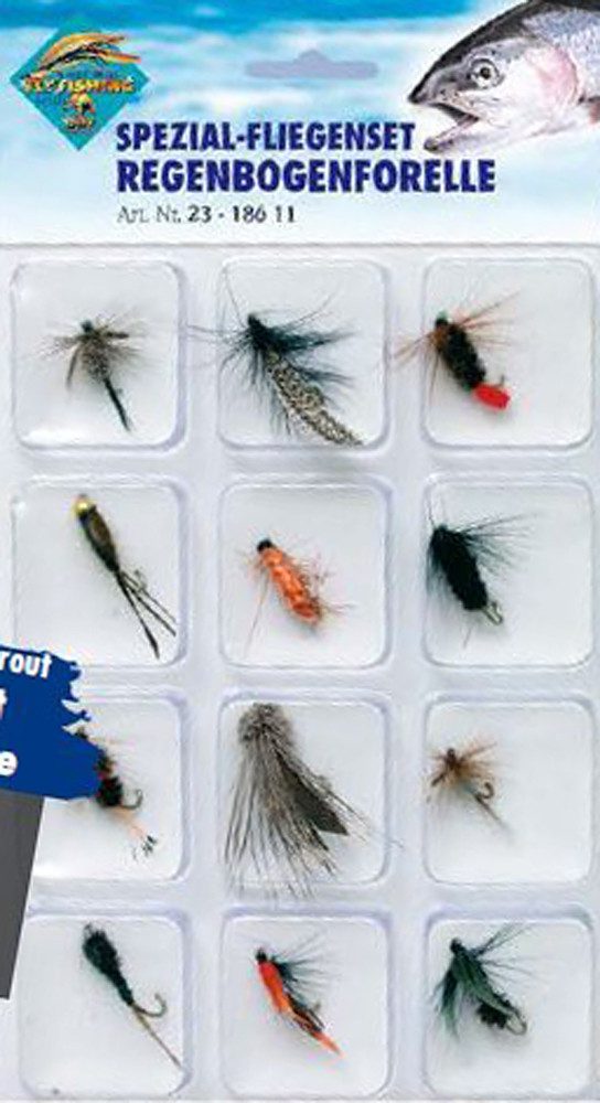 Ausführung | Spezialfliegen-Set Regenbogenforelle 12 Stück. |