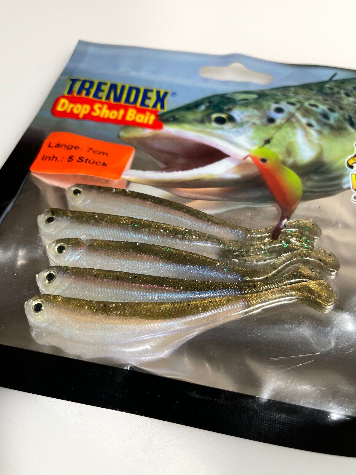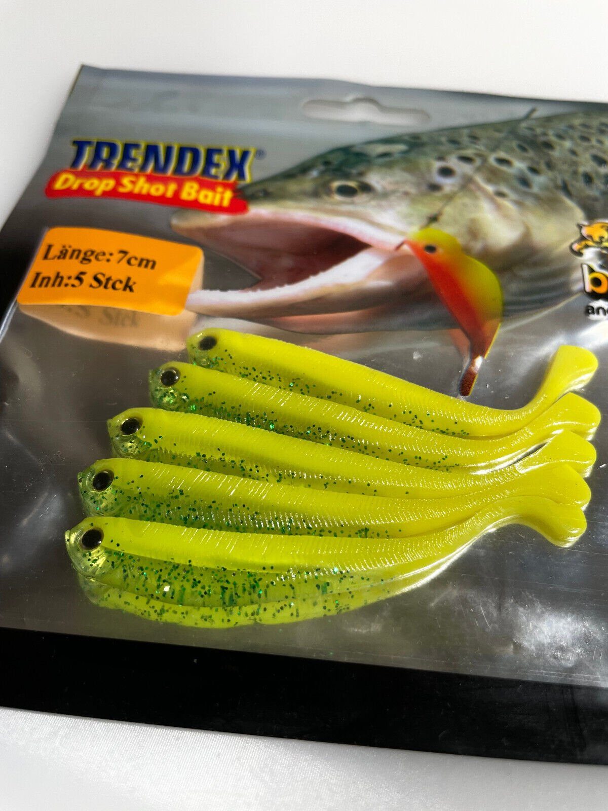 Drop Shot Köder von Behr Fishing. 90% der Angler verwenden beim „Dropshoting“ Ködergrößen bis ca. 10 cm, weil sie optimal ins Beuteschema von Barsch und Zander passen. Aus demselben Grund wird der Haken bei einer Drop Shot Montage ohne Zusatzgewicht (wie es z.B. beim Angeln mit Jigköpfen üblich ist) am Gummikörper befestigt. Auf diese Weise kann der Köder sein bestes Spiel entfalten und die Räuber zu einem Anbiss buchstäblich verführen. Впередhin können die Räuber einen unbeschwerten Köder leicht einsaugen, ohne dass sie sofort verdacht schöpfen müssen.
