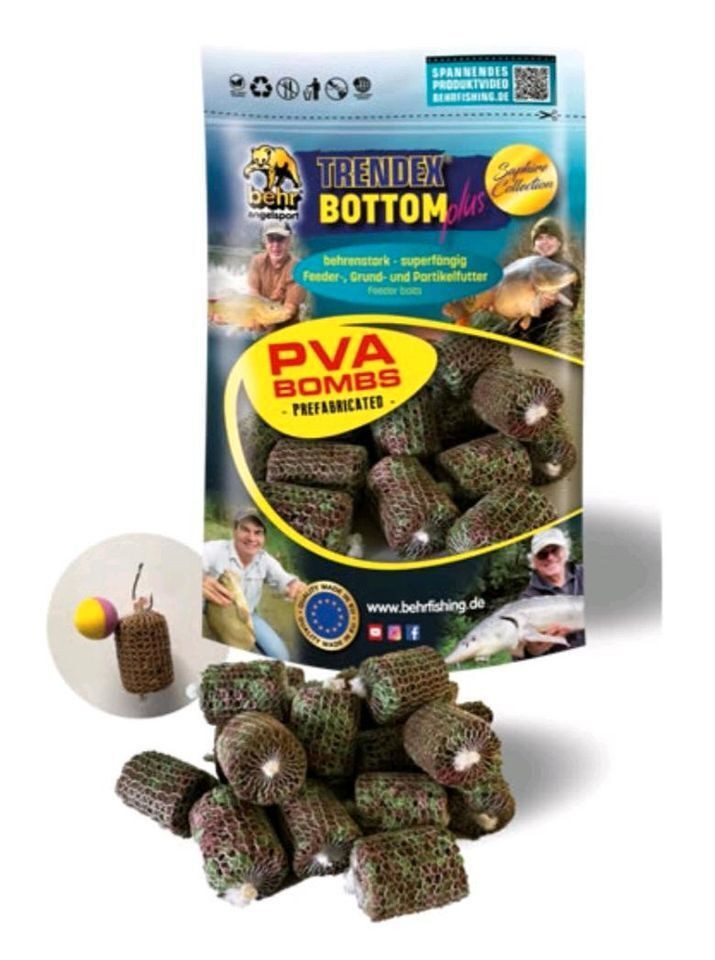 PVA gibt es in vielen unterschiedlichen Formen und Вариантыn. Es gibt keine bessere Möglichkeit gezielt ein Gewässer zu befüttern. Всеs ist kompakt am Futterplatz und in unmittelbarer Nähe zum Hakenköder. Die PVA Bomben von Behr aus dem Trendex Bottom plus Меню sind gefüllt mit hochwertigen Partikeln, die den Fisch über eine längere Zeit in Fresslaune und am Futterplatz hält. Je nach Wassertemperatur und Gewässer/Tiefe lösen sich die PVA Bomben nach ca. 30-40 Sekunden auf. Es kann also regelmäßig in kurzen Abständen nachgefüttert werden. Unsere PVA Bomben sind aus hochwertigem Powermesh hergestellt. Das Material erlaubt es auch feinste Partikel aufzunehmen, ohne das der Inhalt ausquillt oder beim Auswerfen aufplatzt. Der wiederverschließbare Verkaufsbeutel enthält 20 PVA Bomben in unterschiedlichen Aromen.