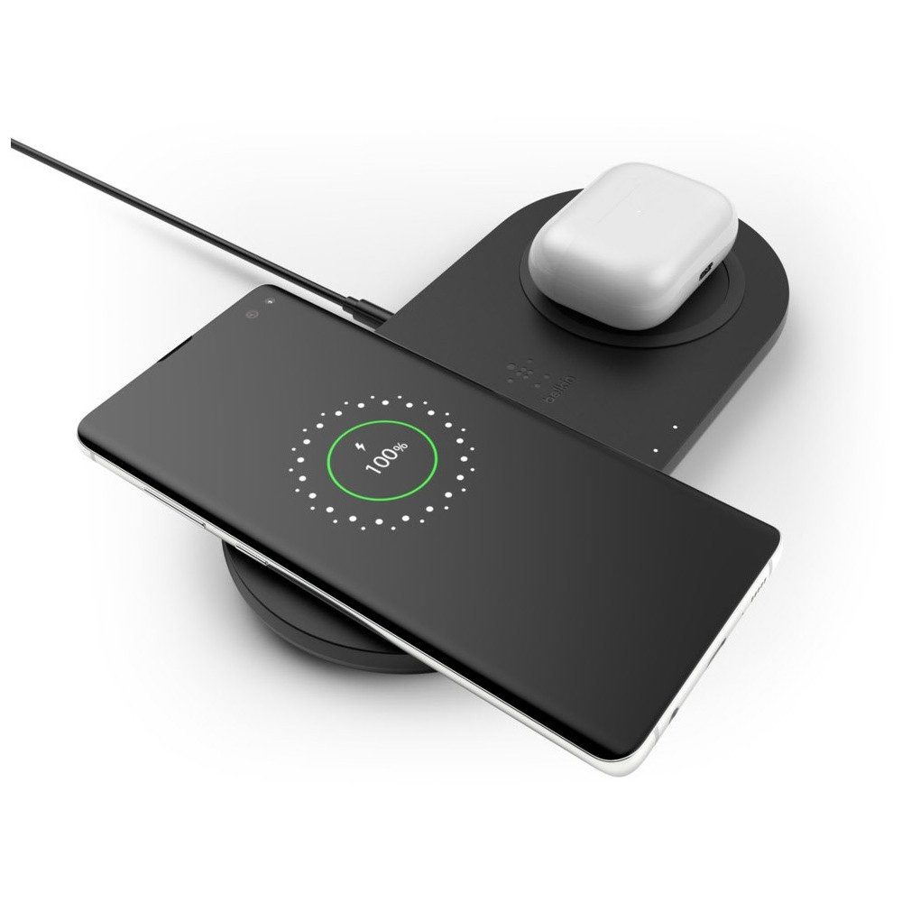 Ausstattung | Doppelladefunktion für zwei Geräte 10W drahtloses Laden komfortables Design hochwertige Belkin Technologie kompakte Bauweise |