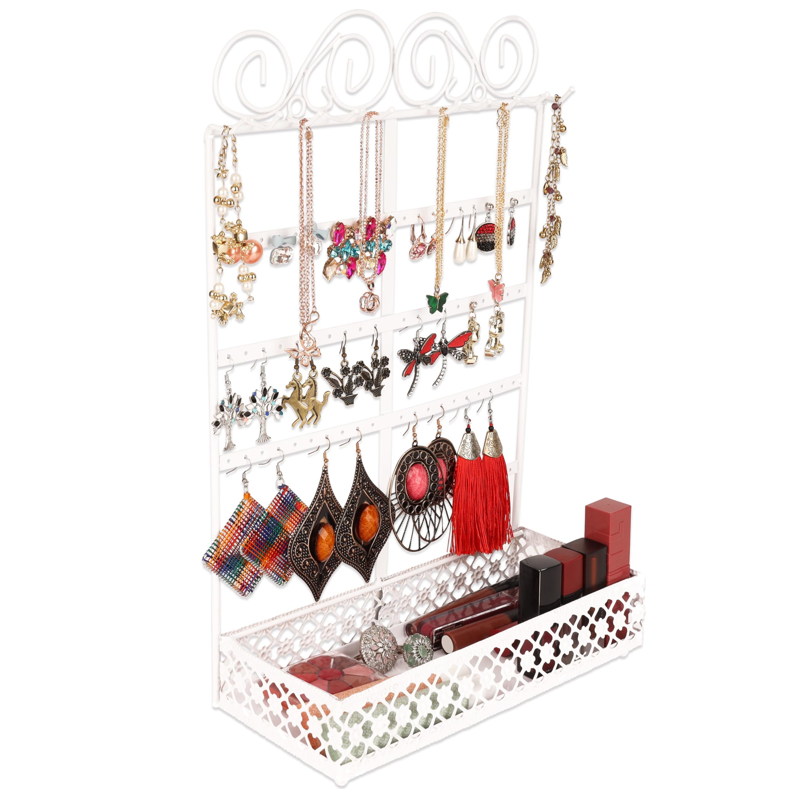Belle Vous Weiße Metall Ohrring Schmuck Organisator Display Ständer mit Schmuck Behälter.