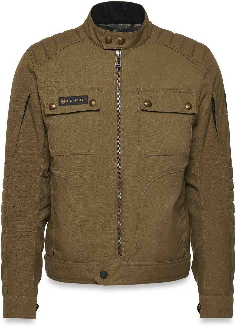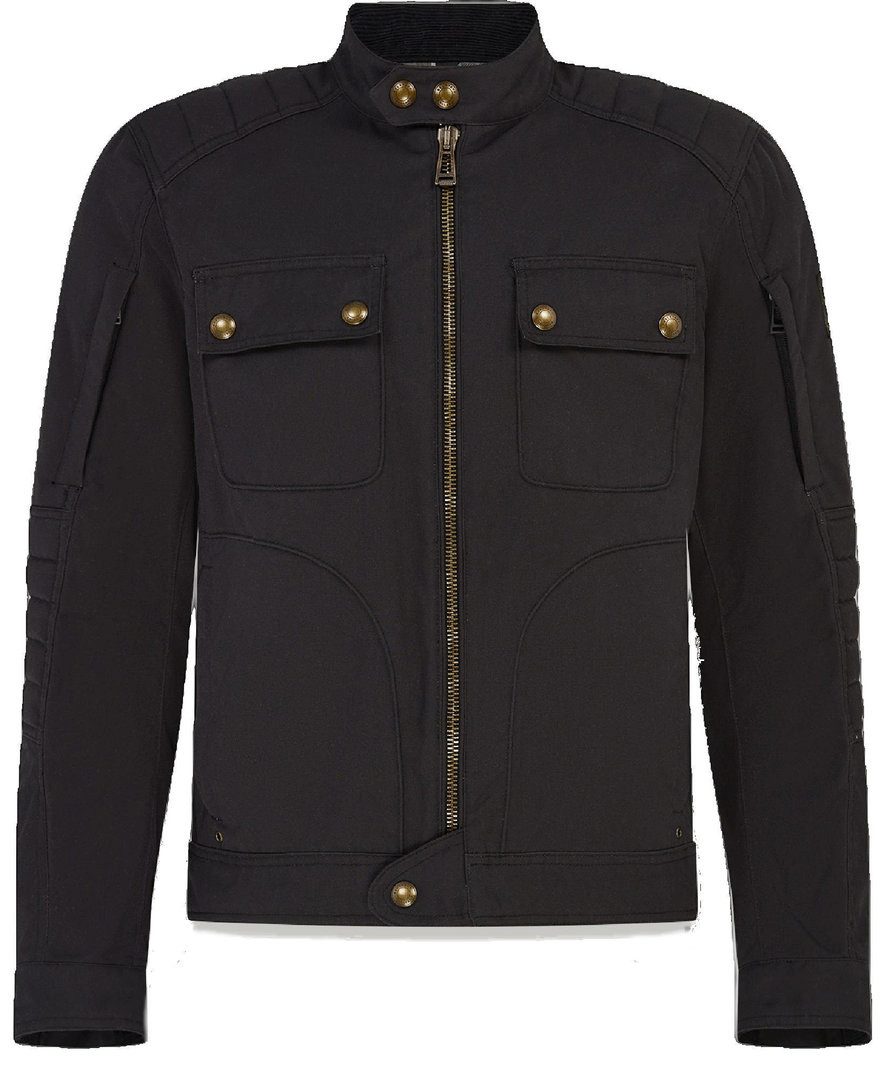 Die Roberts Motorradjacke aus technischem Baumwoll-Canvas mit atmungsaktiver, wasserdichter Membran ist mit D3O® Schulter- und Ellbogenprotektoren sowie einer Innentasche für einen optionalen Rückenprotektor ausgestattet. Erhältlich in Schwarz oder dem charakteristischen Belstaff-Olivgrün, verfügt sie über Reißverschlusstaschen am unteren Rumpf sowie eine Innentasche mit Reißverschluss für Wertsachen. Strapazierfähiger, ölbeständiger Kordsamtbesatz an Kragen und verstellbaren Manschetten sorgt für zusätzlichen Komfort. Belüftungsöffnungen unter den Armen fördern die Luftzirkulation, während ein Reißverschlussschutz mit integrierter Regenrinne effektiv vor Nässe schützt. Abgerundet wird das Design durch das charakteristische karierte Baumwollfutter, antik anmutende Messingverschlüsse, einen Logoaufnäher am Ärmel und das traditionelle Etikett auf der Brust.