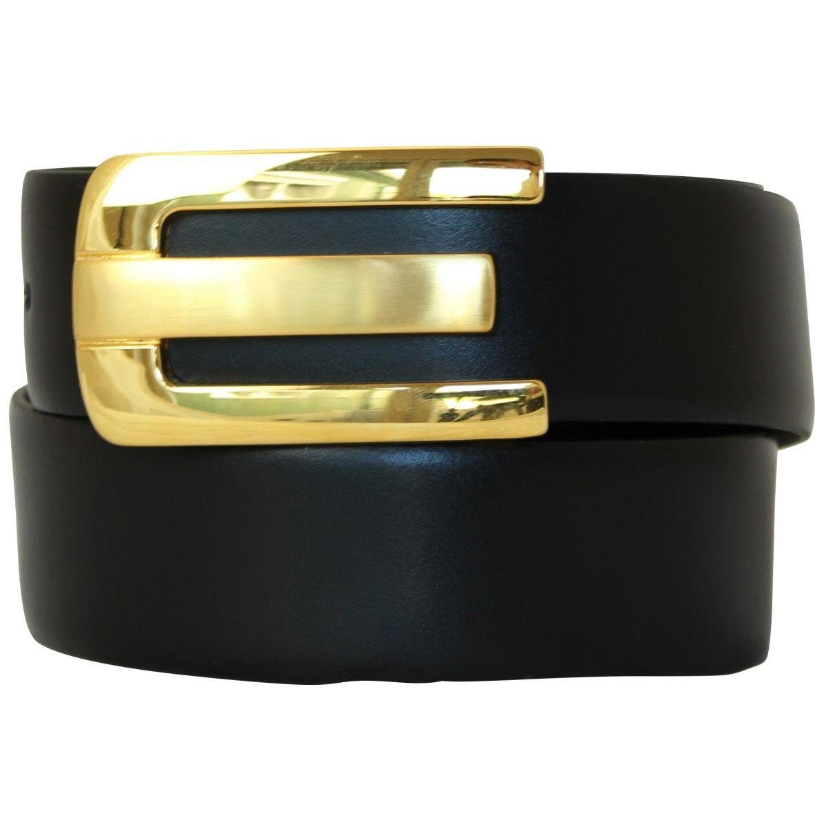 Ledergürtel mit einer Breite von 3,5 cm. Die Koppelschließe macht diesen Gürtel zu einem klassischen Anzuggürtel. Der Gürtel aus echtem Leder kann sowohl von Herren auf dem Anzug oder der Jeans als auch von Damen auf dem Kleid oder der Hose getragen werden - der perfekte Begleiter für jedes Event, das Büro oder als Freizeit-Accessoire. Die massive Koppel-Schließe aus Metall (Zamak) hat die Farbe Gold.
