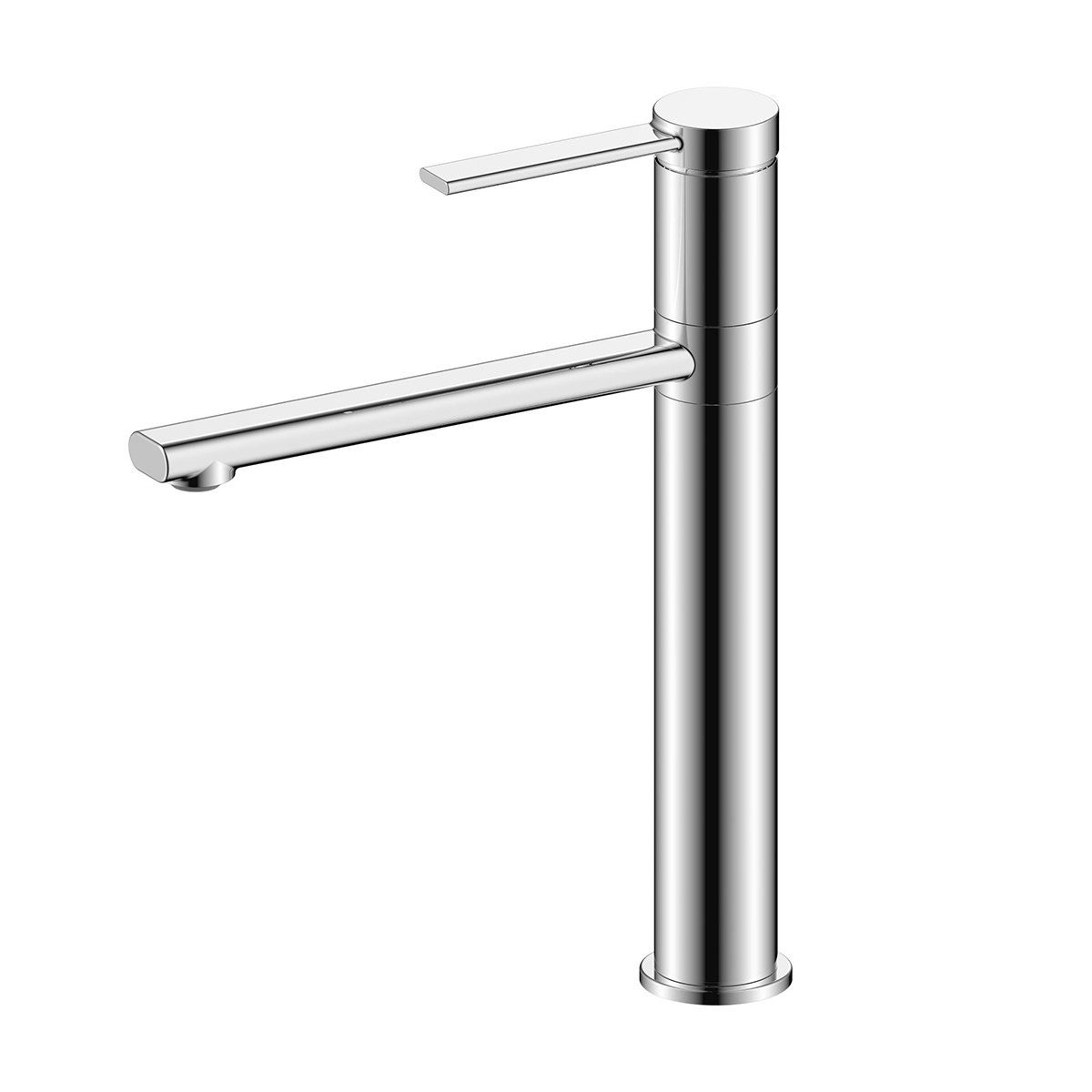 Die Waschtischarmatur in Chrom vereint moderne Optik mit durchdachter Funktionalität. Mit ihrer hohen Bauform eignet sie sich ideal für Aufsatzwaschbecken oder Waschtische mit mehr Raum. Die Bedienung erfolgt klassisch und bequem über einen seitlichen Griff, der eine präzise Steuerung von Wassermenge und Temperatur ermöglicht.