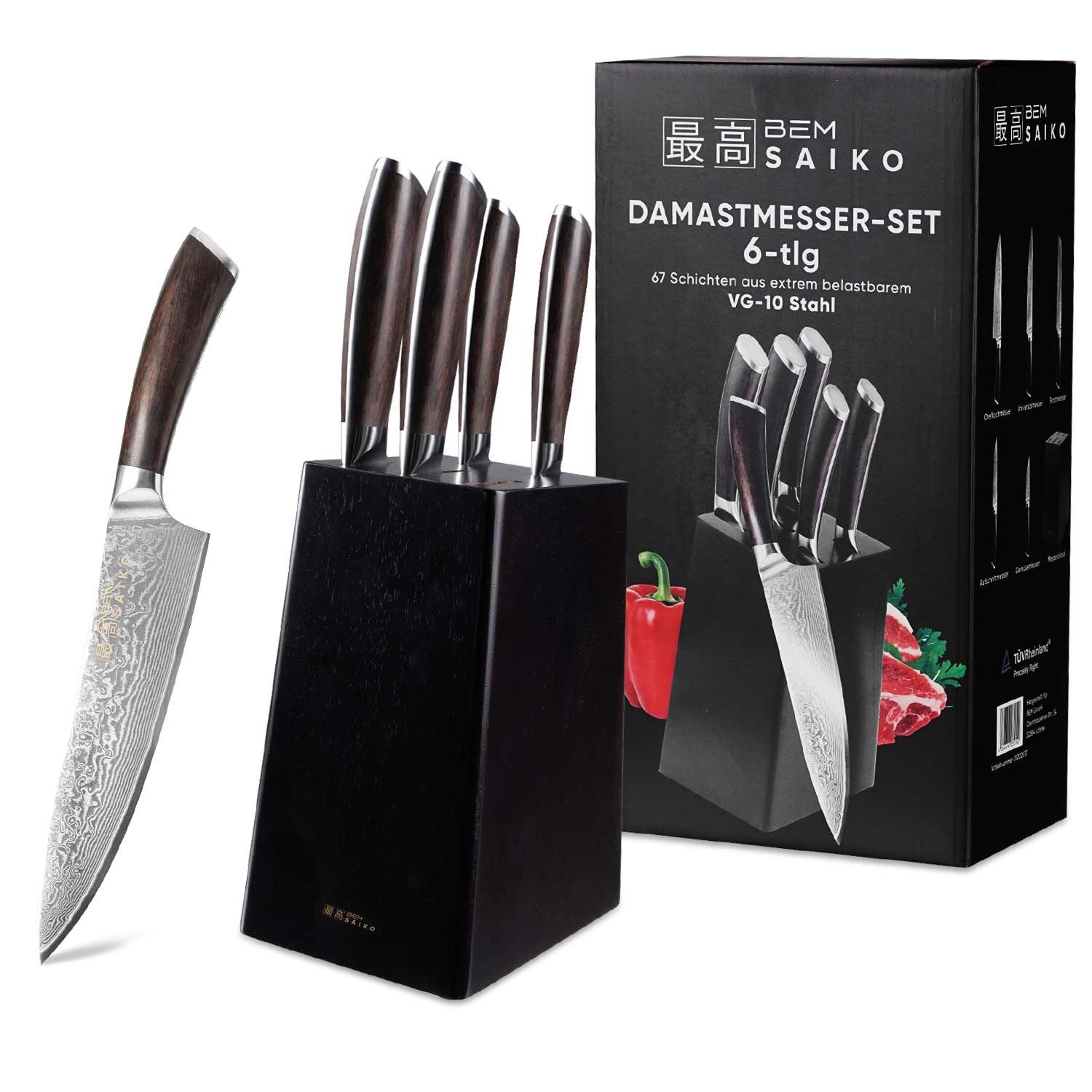 Lieferumfang | 1x Gemüsemesser 1x Allzweckmesser 1x Brotmesser 1x Kochmesser 1x Tranchiermesser 1x Meesserblock |