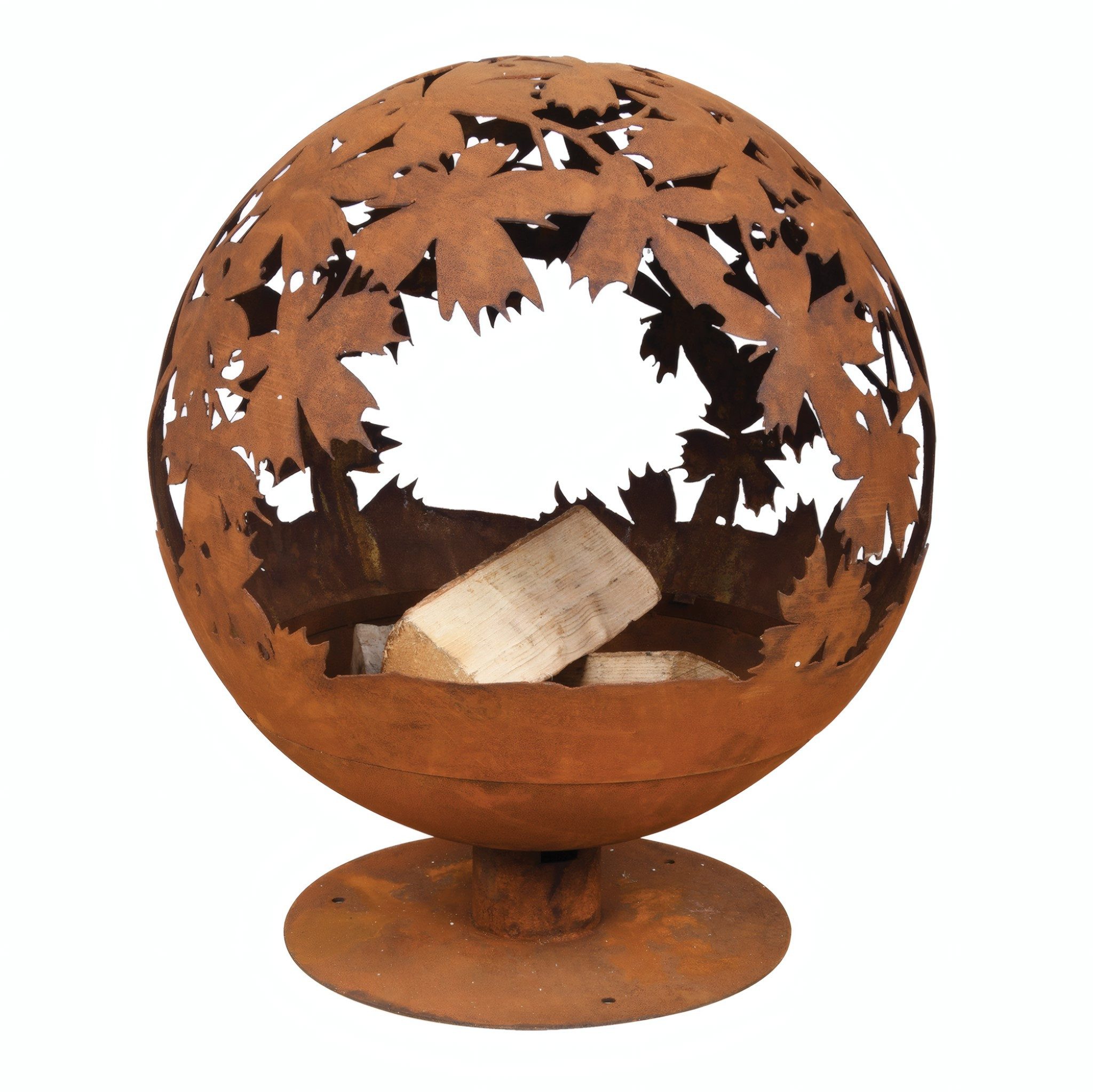 Mit dem Feuerball schaffen Sie sich eine gemütliche Atmosphäre auf der Terrasse oder in Ihrem Garten. Gemütliche Sommerabende und lange Herbstfeuer werden mit der Esschert Design Feuerstelle zum Genuss. Das Produkt wurde mit einem Laser geschnitten, sodass die Blätter noch besser zur Geltung kommen. Auch das rostige Design liegt vollkommen im Trend. Natürlichkeit und Originalität zählt zu den Eigenschaften, welchen sich die Marke Esschert verschrieben hat.