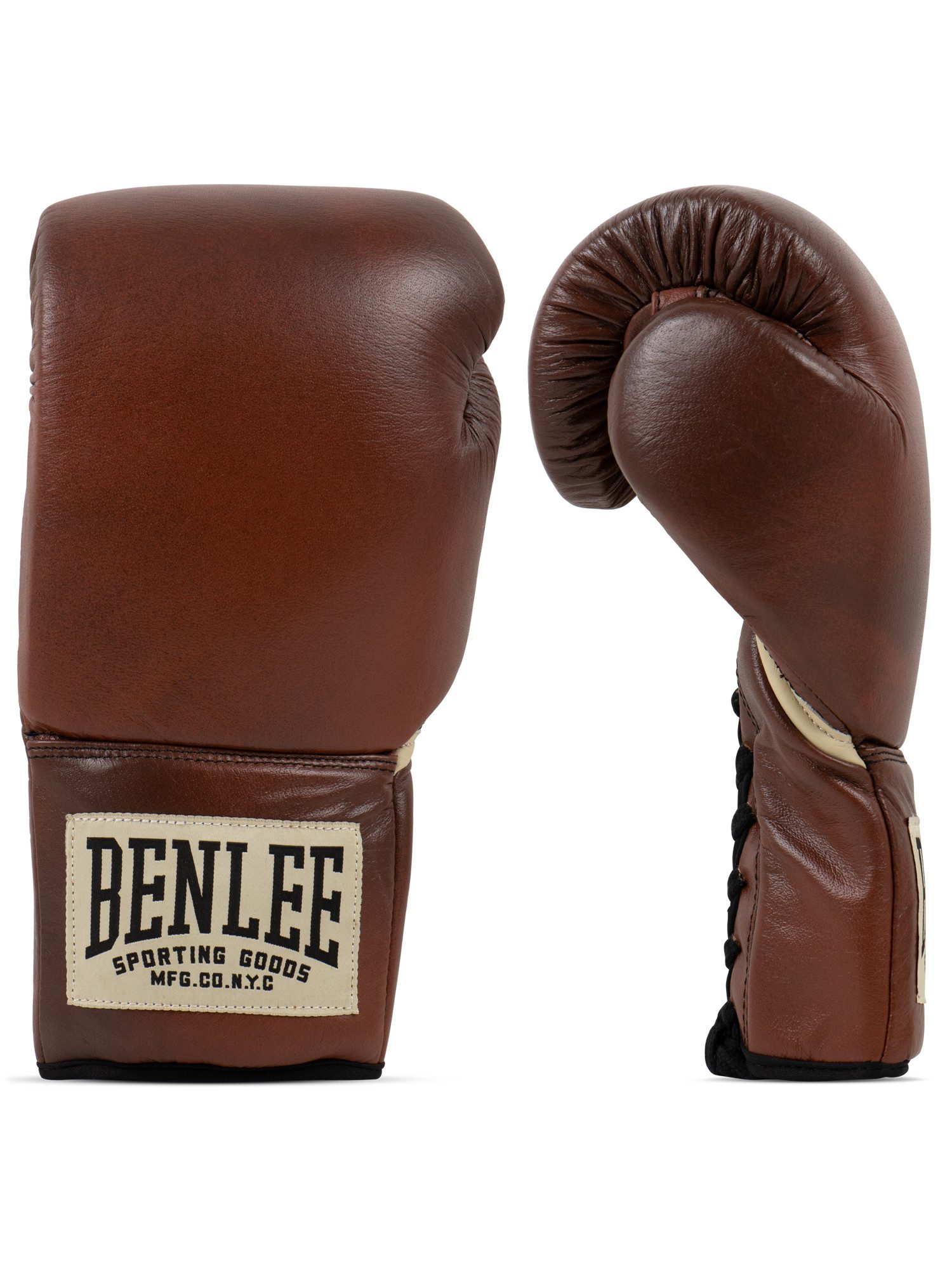 BENLEE Wettkampfhandschuhe aus der Premium Line in professioneller Qualität. Dank des Schnürsystems bieten sie eine sichere und bequeme Passform. Hergestellt aus hochwertigem, langlebigem und weichem Leder mit einem angenehm weichen Futter und mehrlagiger Polsterung, bieten sie den Händen hervorragenden Schutz und Komfort zugleich. Empfohlen für Wettkampf und professionelle Kämpfe. Der Look der Boxhandschuhe ist inspiriert von der "Old Fashion" früherer Jahre, ein echtes Highlight!