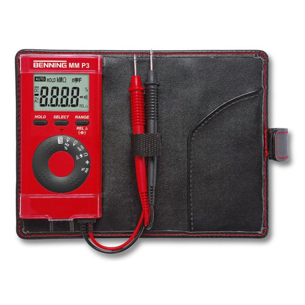 Digital-Multimeter im Taschenformat Nur 130 g leicht und 12 mm tief, modernes Geräte-Design Passt inklusive Zubehör in jede Westentasche Grundmessarten für Spannung, Widerstand, Frequenz und Kapazität Messwertspeicher HOLD Automatische und manuelle Messbereichswahl Überlastschutz in allen Bereichen Automatische Geräteabschaltung bei Nichtbenutzung (deaktivierbar) Sehr gutes Preis-/ Leistungsverhältnis Schutzetui, Batterien und Messleitungen im Lieferumfang enthalten BENNING MM P3 Anzeigeumfang 5.000 Grundgenauigkeit 0,6% Spannung AC 0,1 mV - 600 V Spannung DC 0,1 mV - 600 V Strom AC - Strom DC - Widerstand 0,1 Ω - 40 MΩ Durchgang / Diode Ja / Ja Frequenz 1 mHz - 5 MHz Kapazität 10 pF - 100 μF Temperatur - Voltsensor - Schnittstelle - Software - Speicherfunktion HOLD Dataloggerfunktion - Messverfahren RMS Messkategorie CAT III 300 V Art.-Nr. 044084