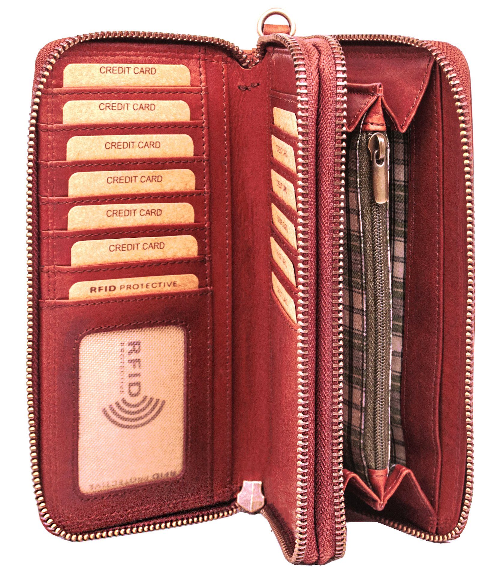 · Damen-Geldbörse - Sehr angenehmes weiches Leder, ein Tolles Material im leichten Vintage-Look. Ein echt hochwertiges Portemonnaie - durch das Langlebige Echt Leder werden Sie den unterschied fühlen. Inklusive RFID-Schutz ist die Börse sicher gegen Datenraub.