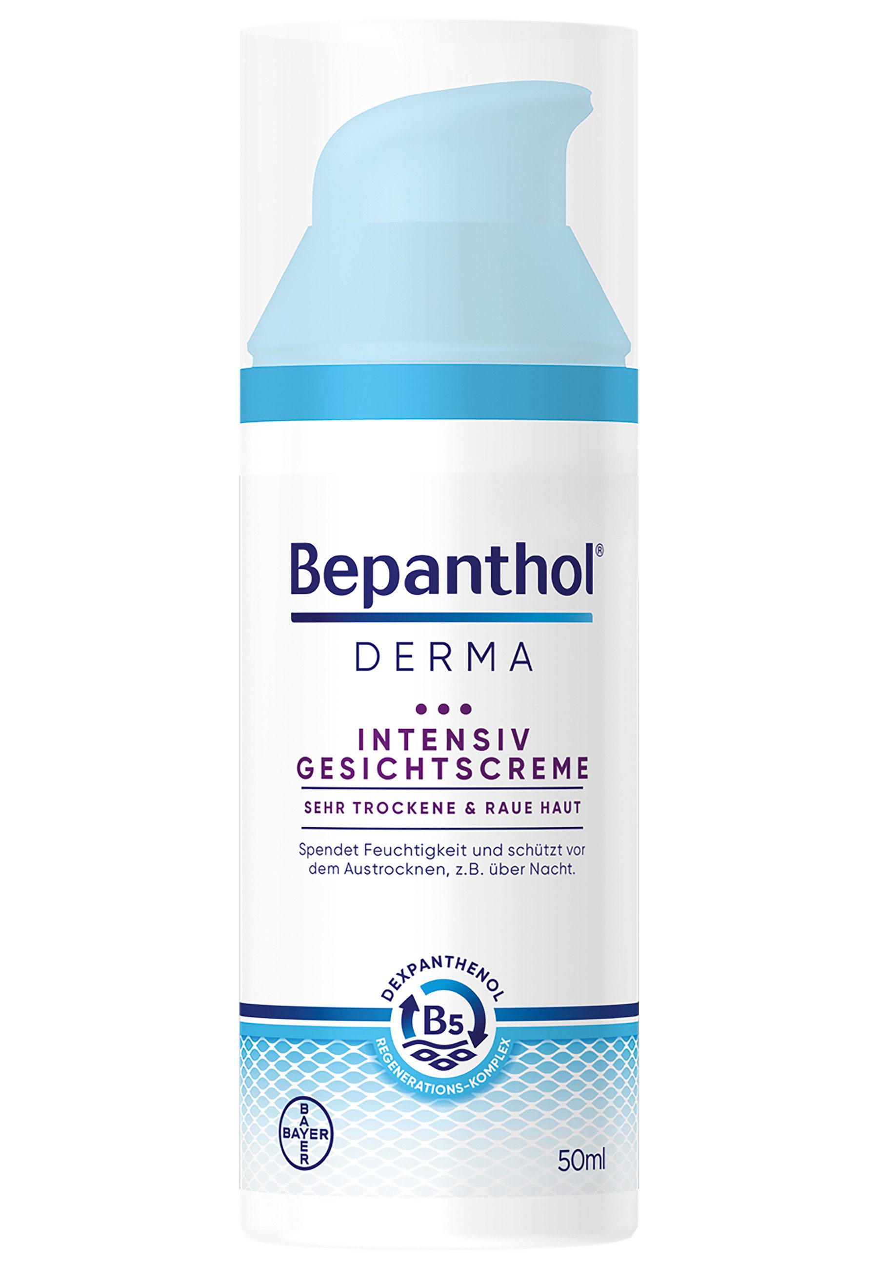 Anwendungsbereich | Bepanthol® DERMA Intensiv Gesichtscreme eignet sich für die sanfte Pflege der Gesichtshaut. Sie ist hautverträglich. |